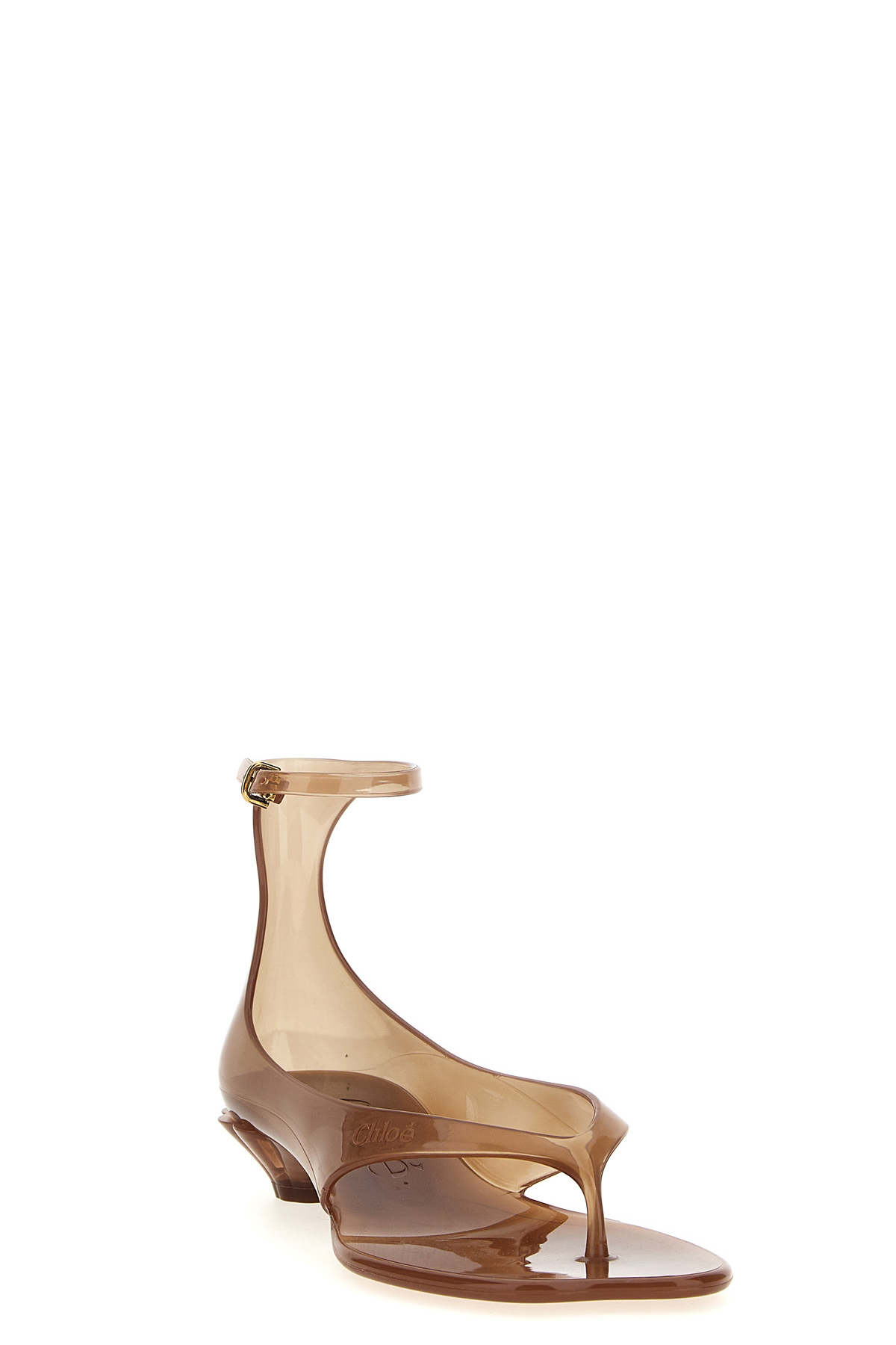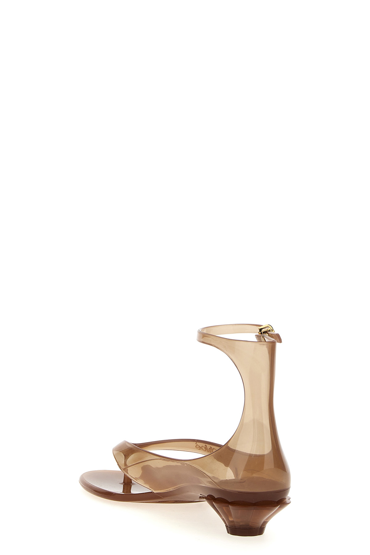 'Chloe Jelly' sandals in transparent TPU, flip-flop model, adjustable ankle strap, wavy sole, shell-shaped heel.