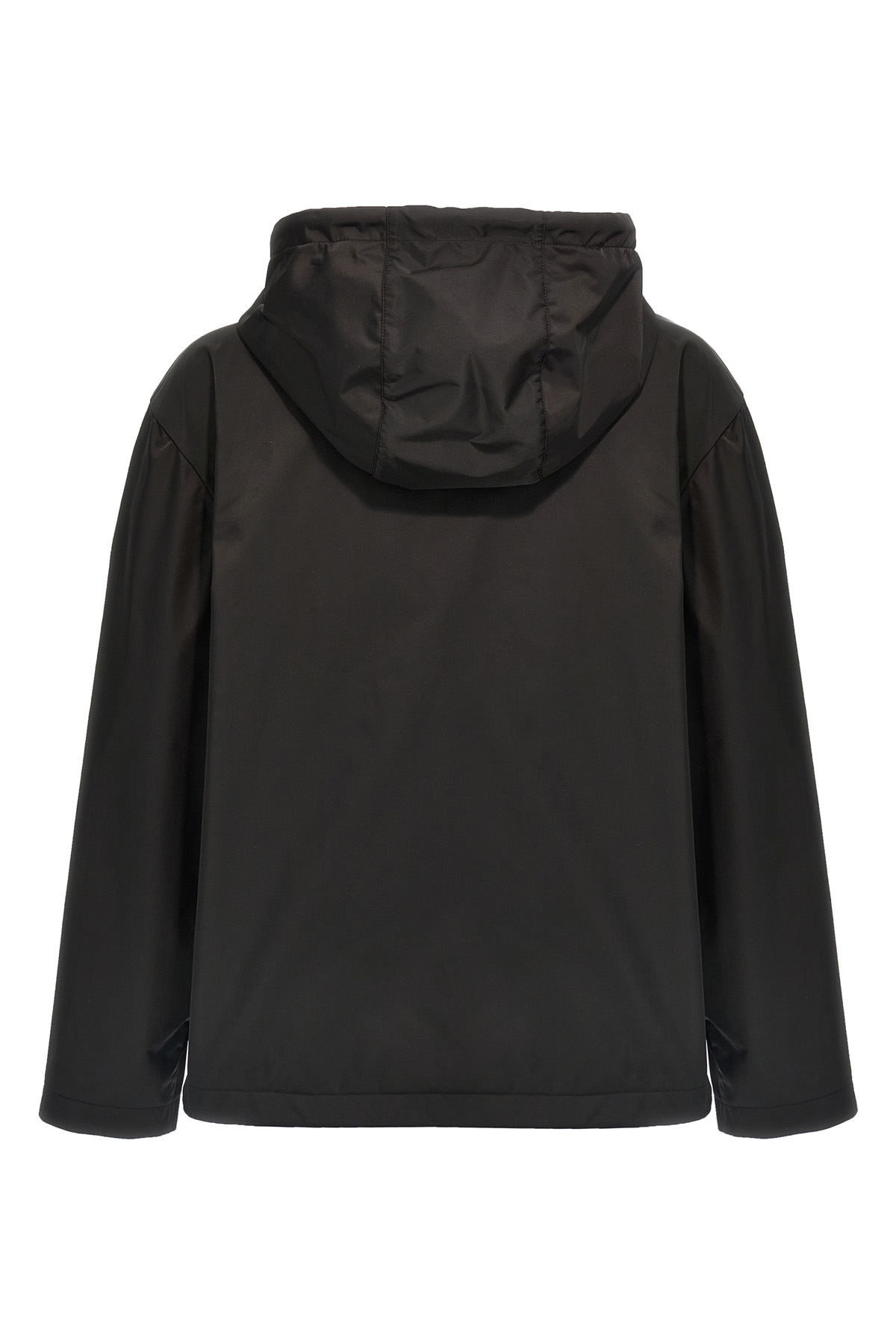 Micro gabardine 'Cassiopea' jacket with contrast grosgrain details, hood, zip closure, pockets, long sleeves with felt logo patch, drawstring on the hem.