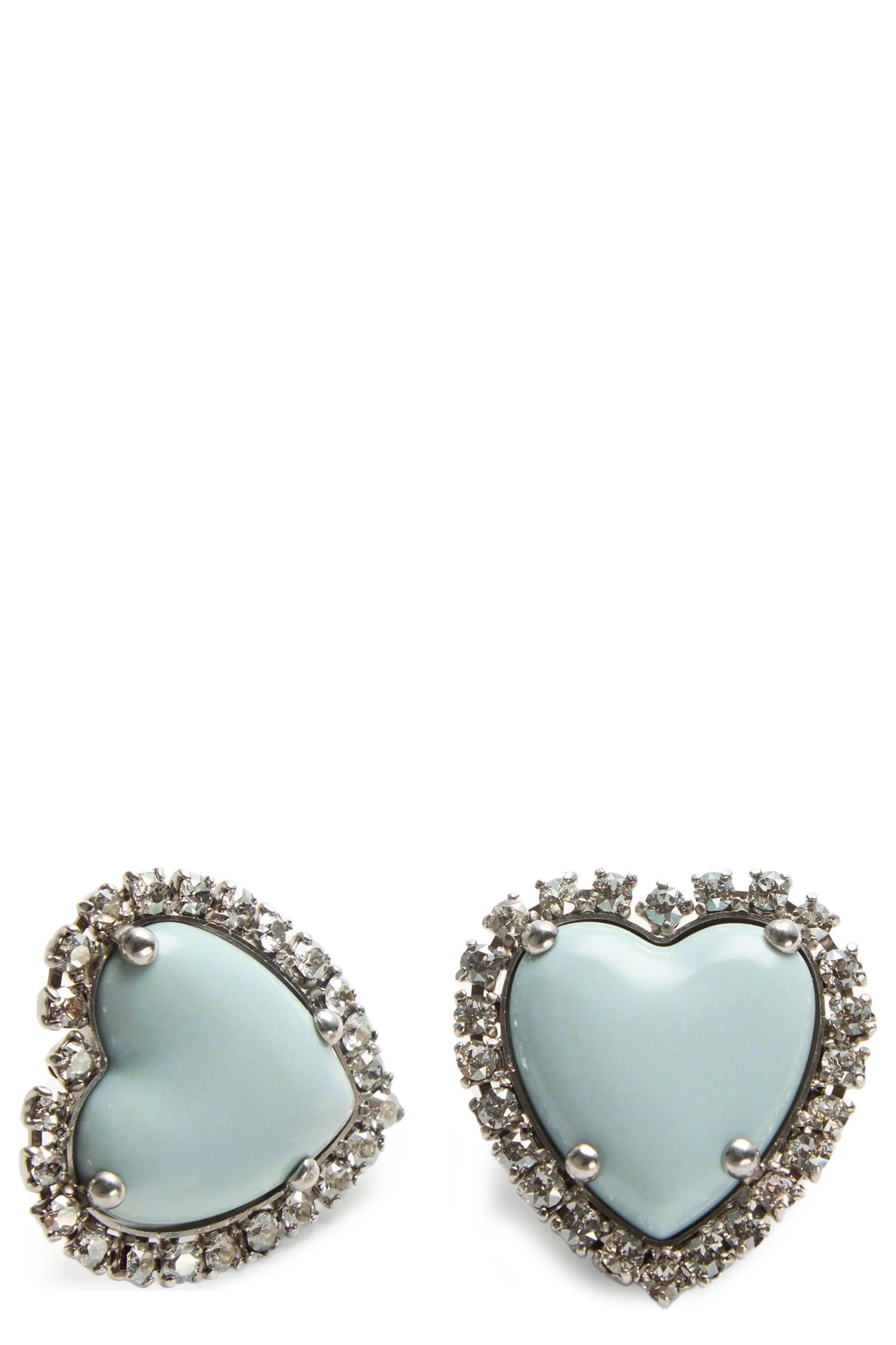 Coeur Hyperbole' vintage effect metal earrings, resin heart-shaped pattern with rounded effect, Swarovski® crystal piping, clip closure. ITEM CANNOT BE RETURNED