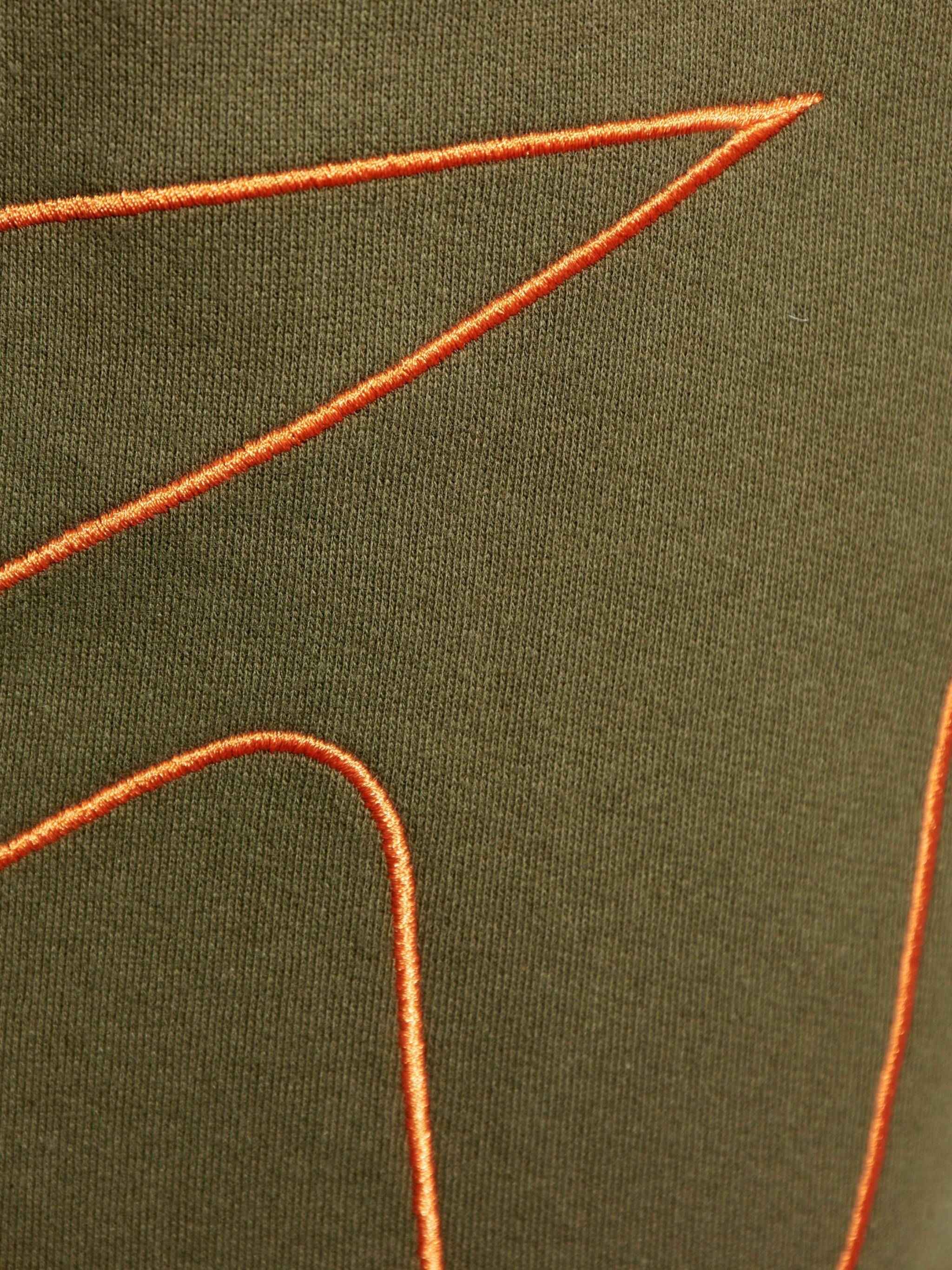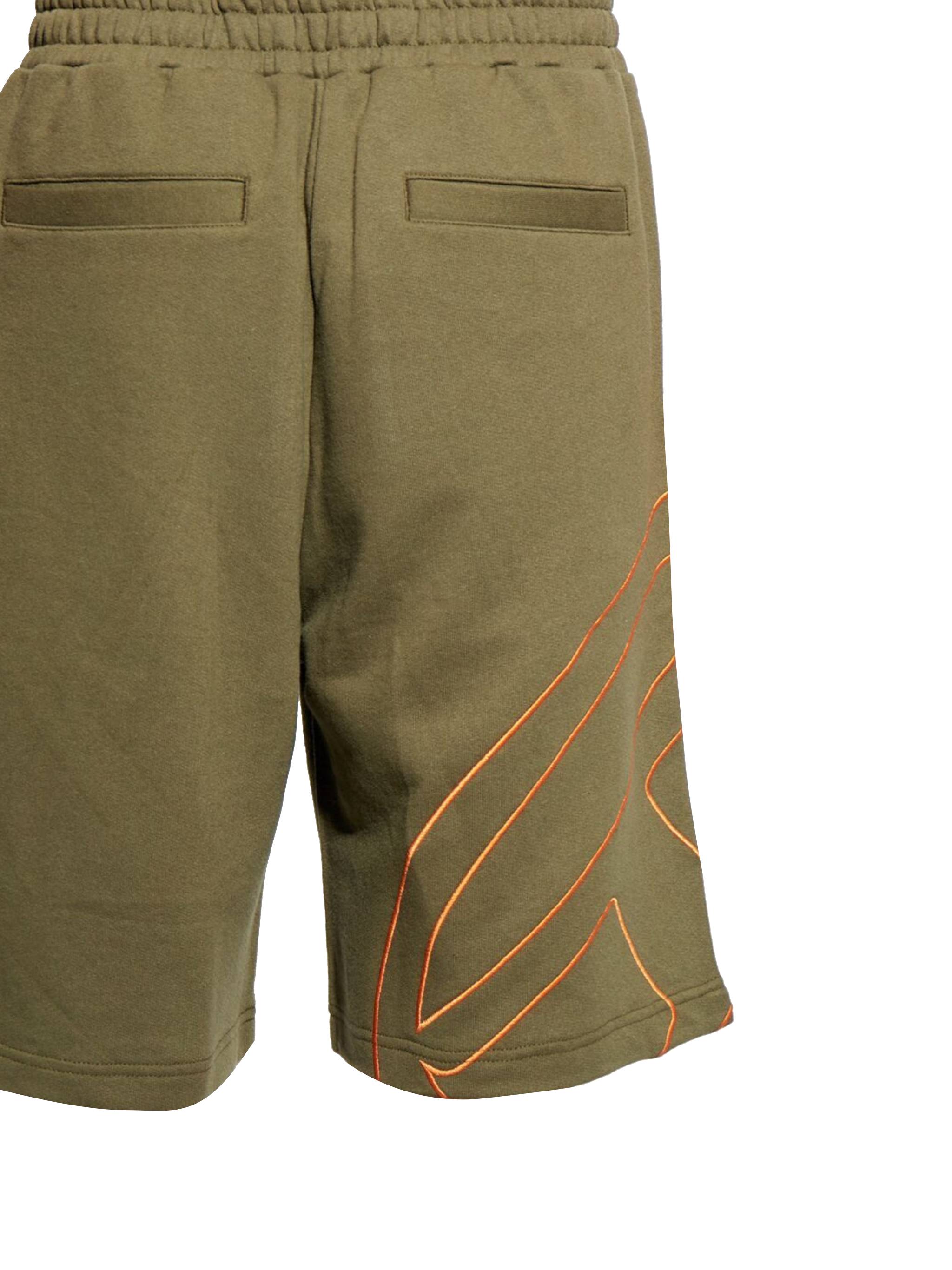 khaki elasticated waistband with internal drawstring embroidered logo at the leg two side inset pockets two rear welt pockets