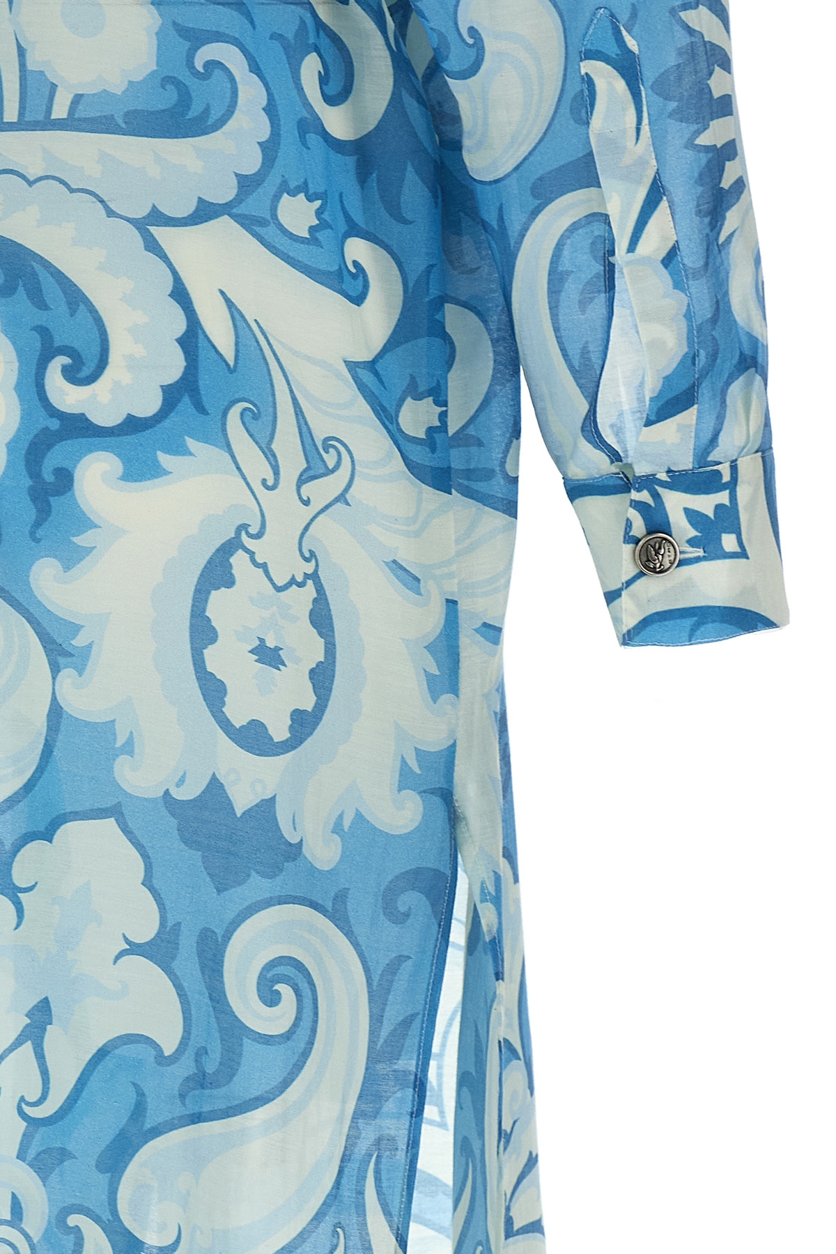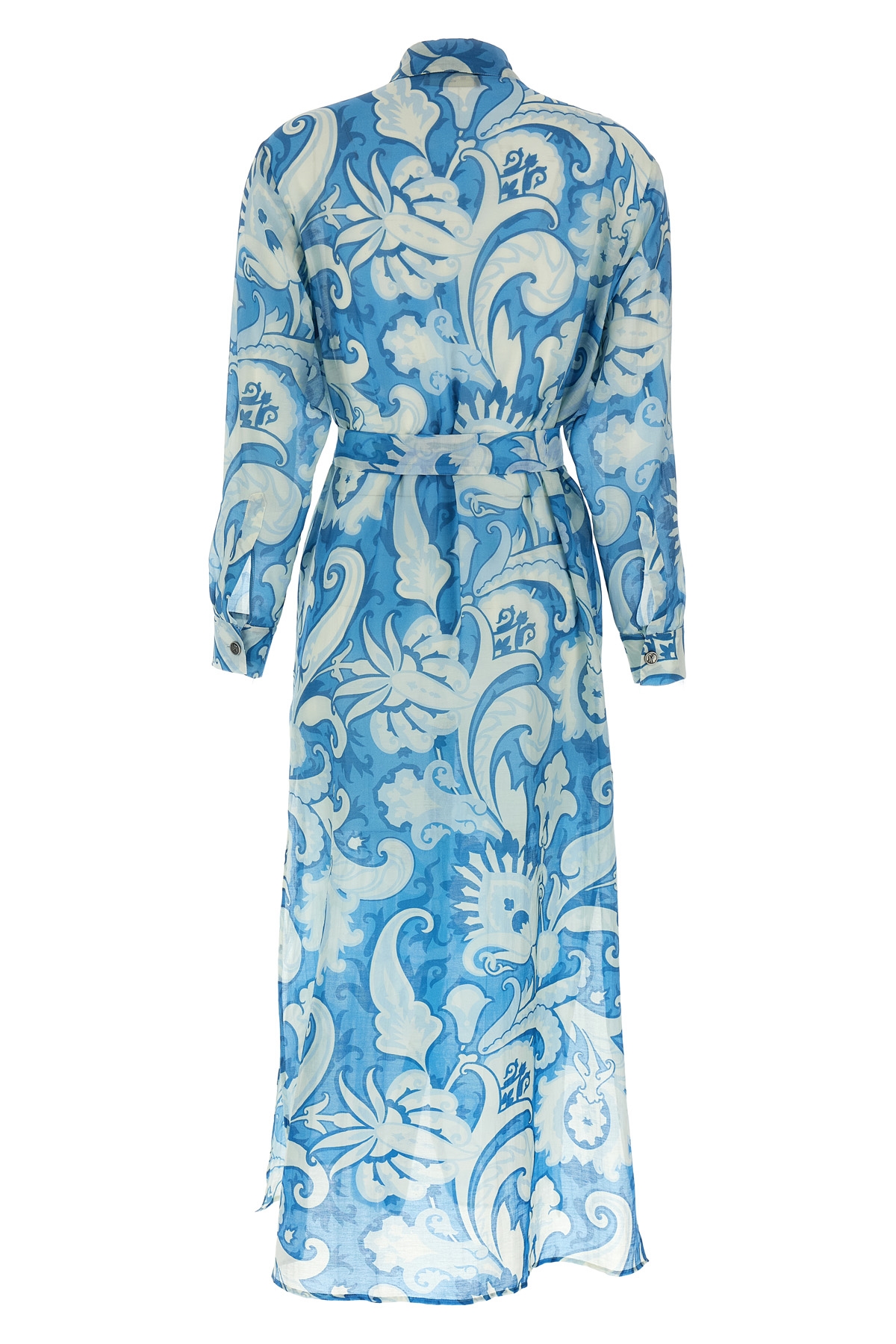 Chemisier dress in cotton and silk blend with floral print, button closure, long cuffed sleeves, side slits, adjustable and removable matching belt.