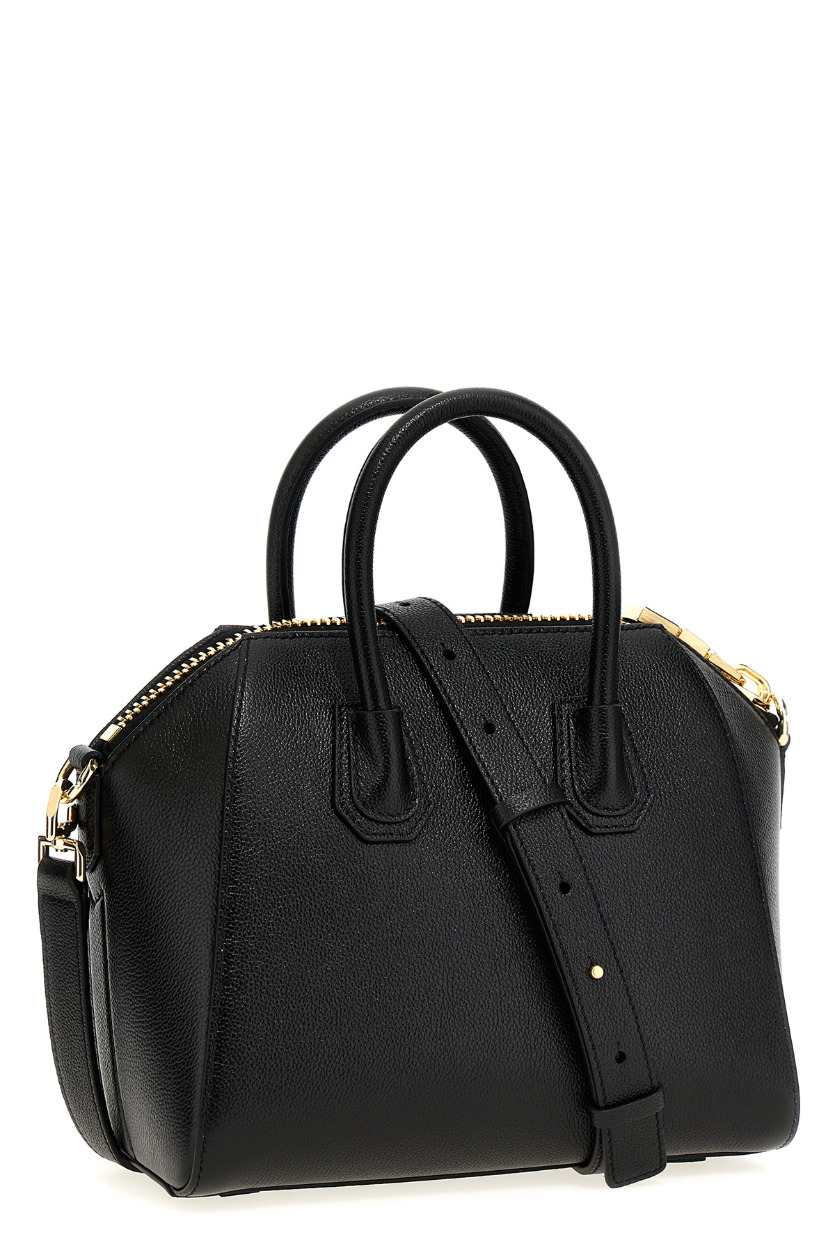 'Antigona' mini handbag in full-grain calf leather, zip closure, double handle, adjustable and removable shoulder strap, front embossed logo.