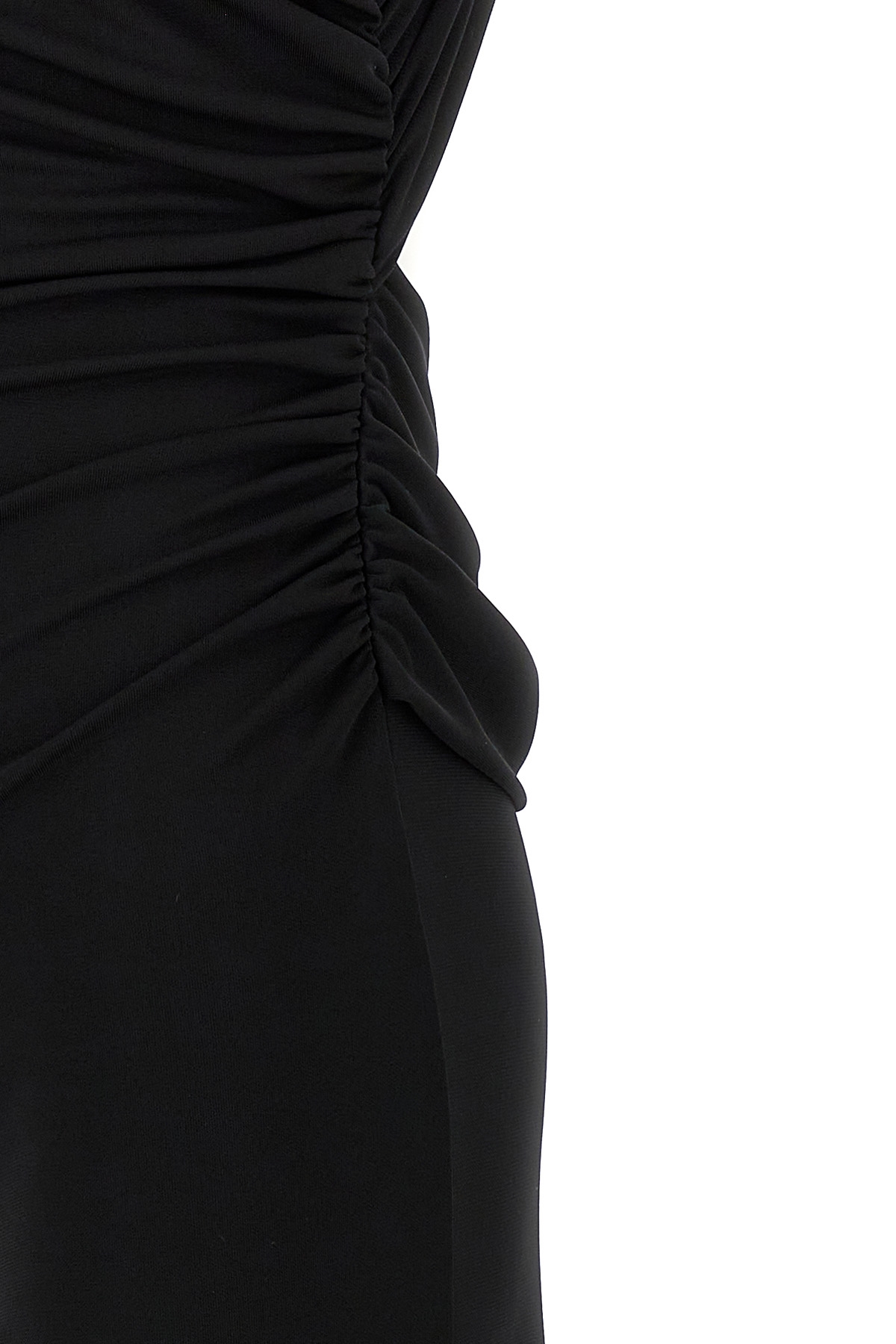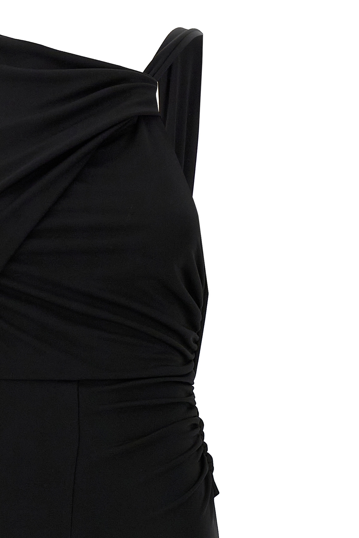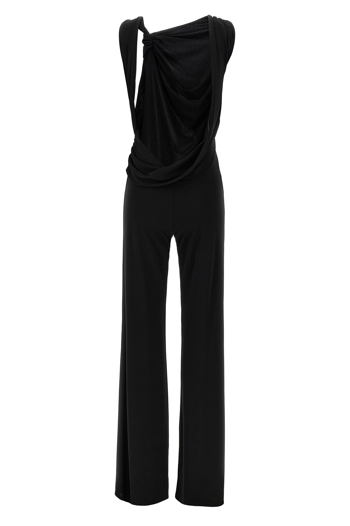 'Venere' stretch jersey jumpsuit with front braiding and side draping, deep back neckline, sleeveless, straight leg.