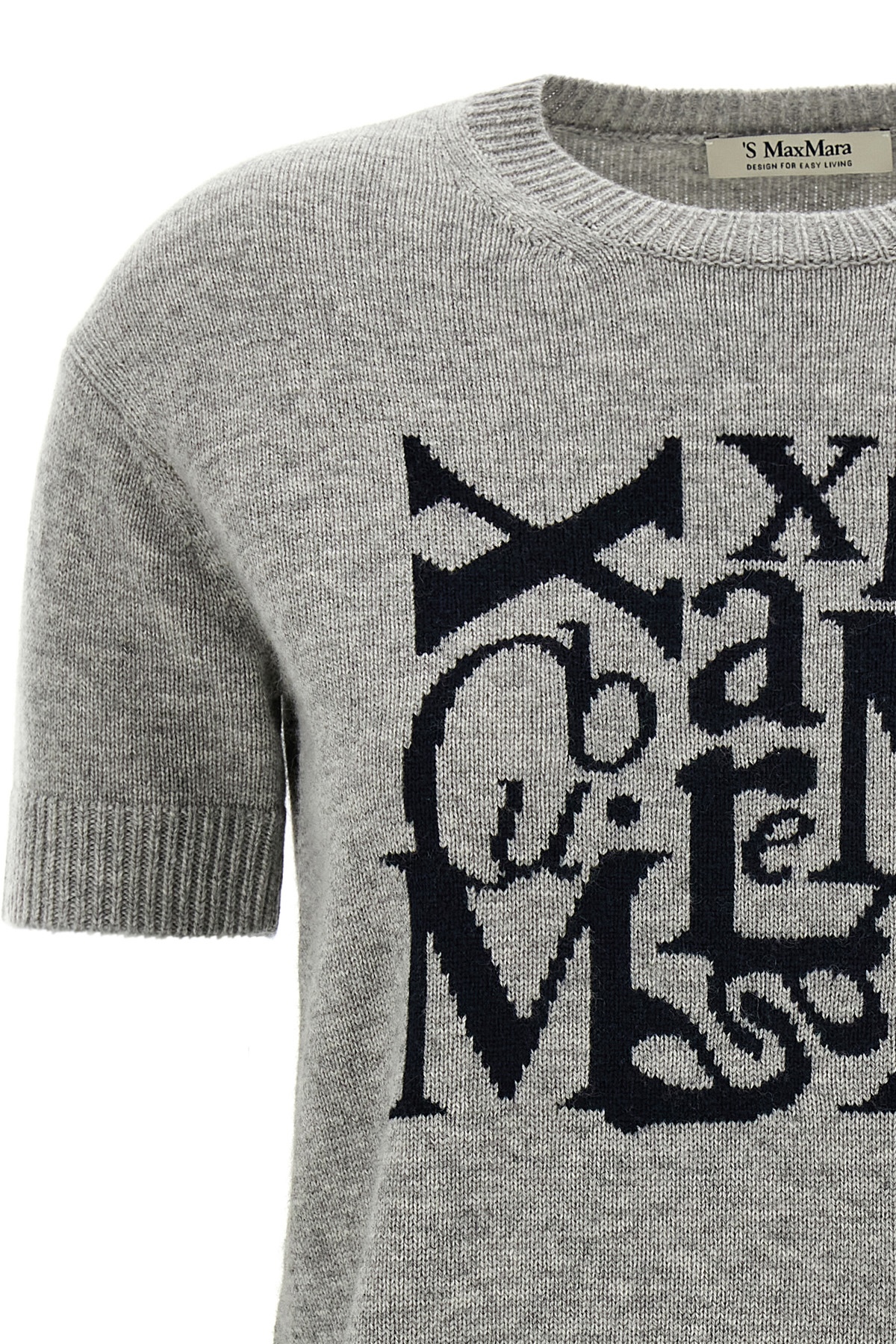 'Felicia' cashmere blend sweater with front logo intarsia, crew neck, short sleeves.