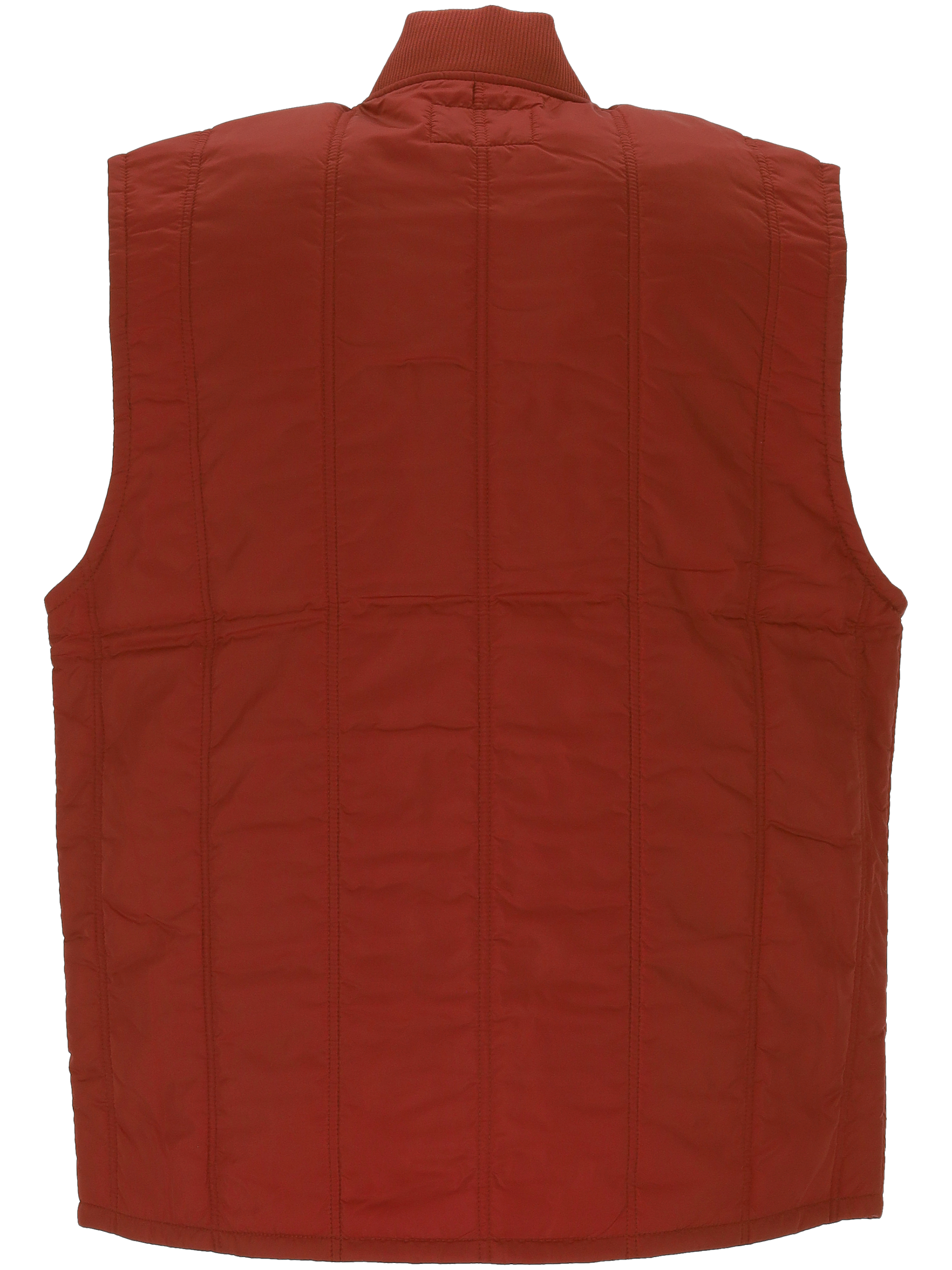 The Lachlan Vest Liner is made of lightweight nylon and features a vertical quilted lining The jacket also features a ribbed knit collar and is embellished with two front pockets The garment is embellished with a square fabric label