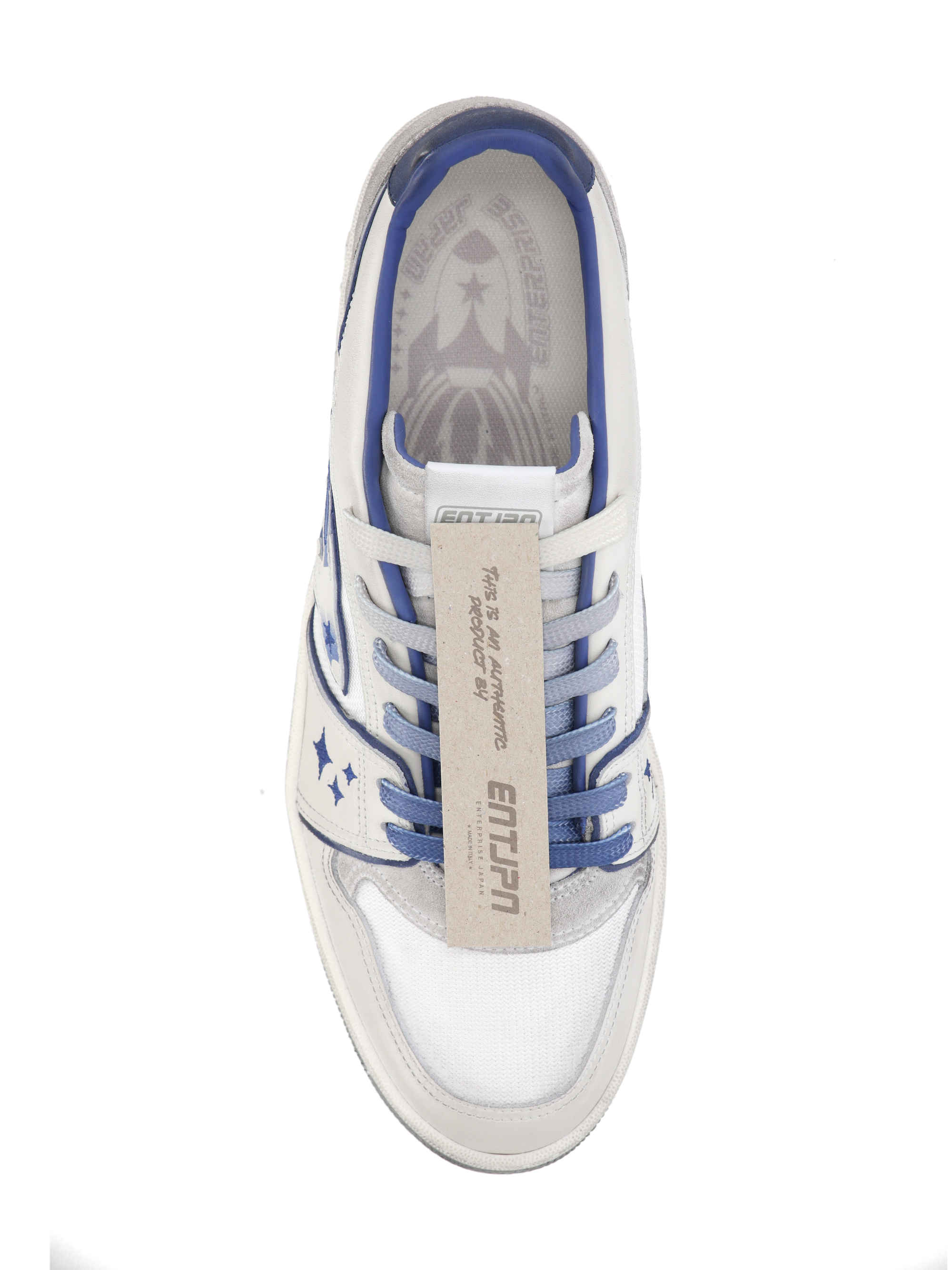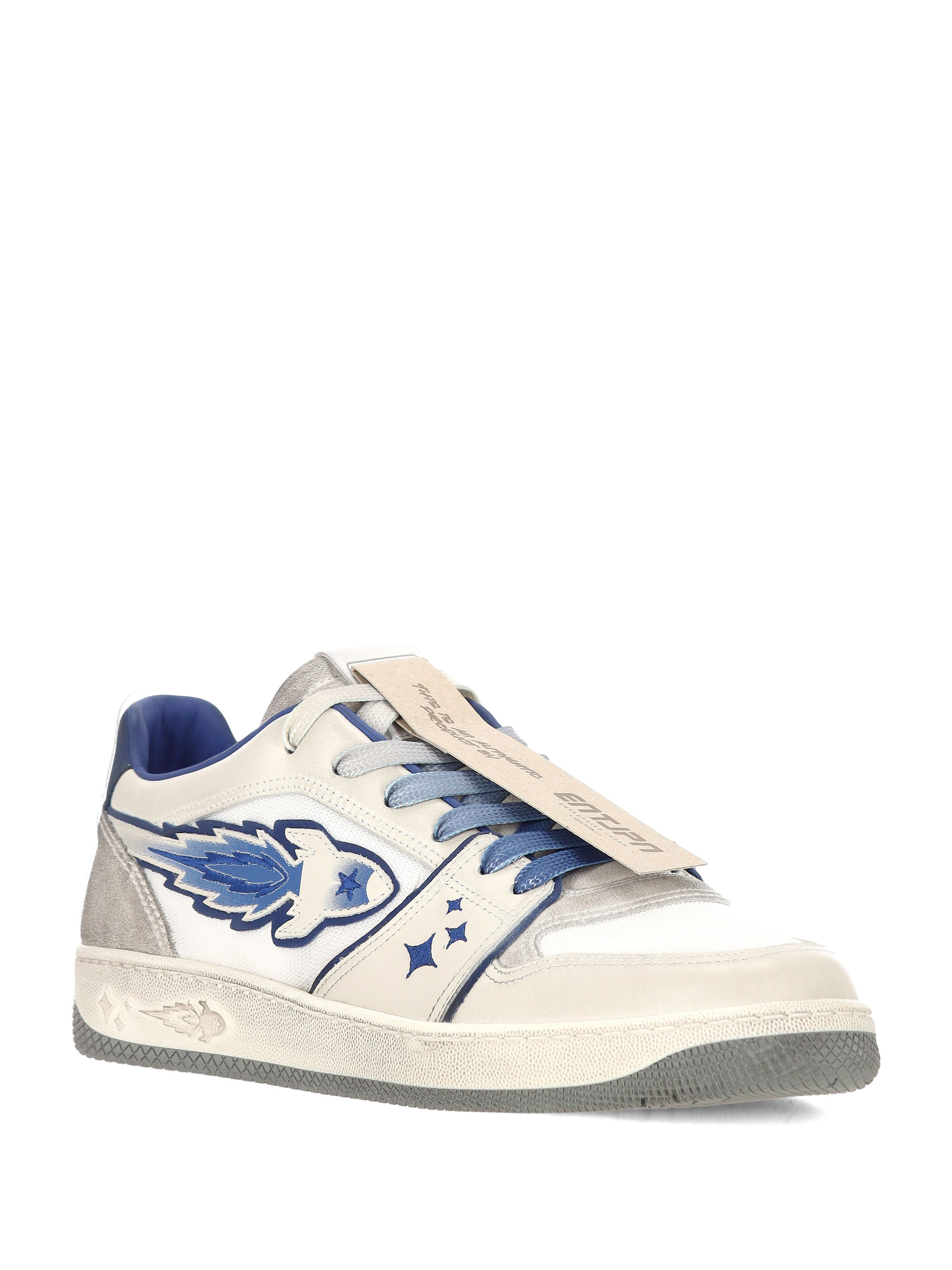 white front laceup fastening panelled design logo patch at the tongue flat rubber sole