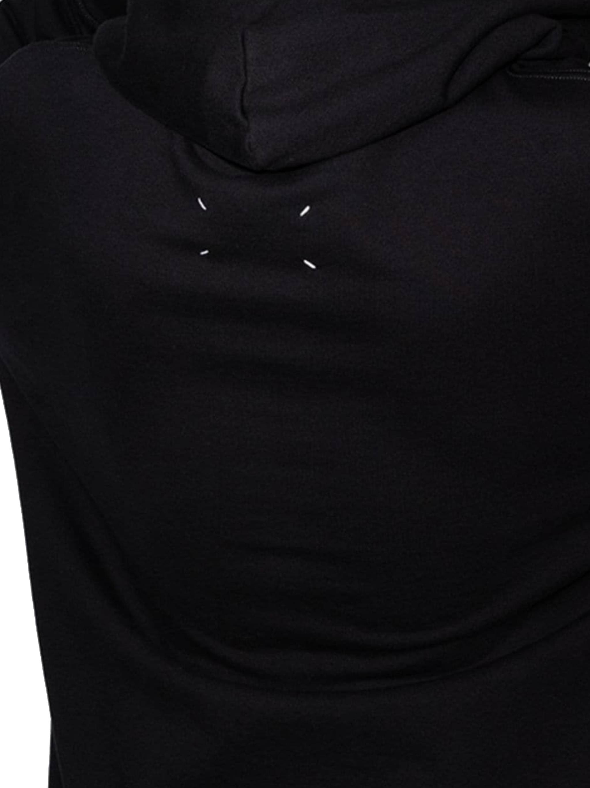 Black cotton logo print at the chest signature fourstitch logo classic hood long sleeves front pouch pocket drop shoulder ribbed cuffs ribbed hem