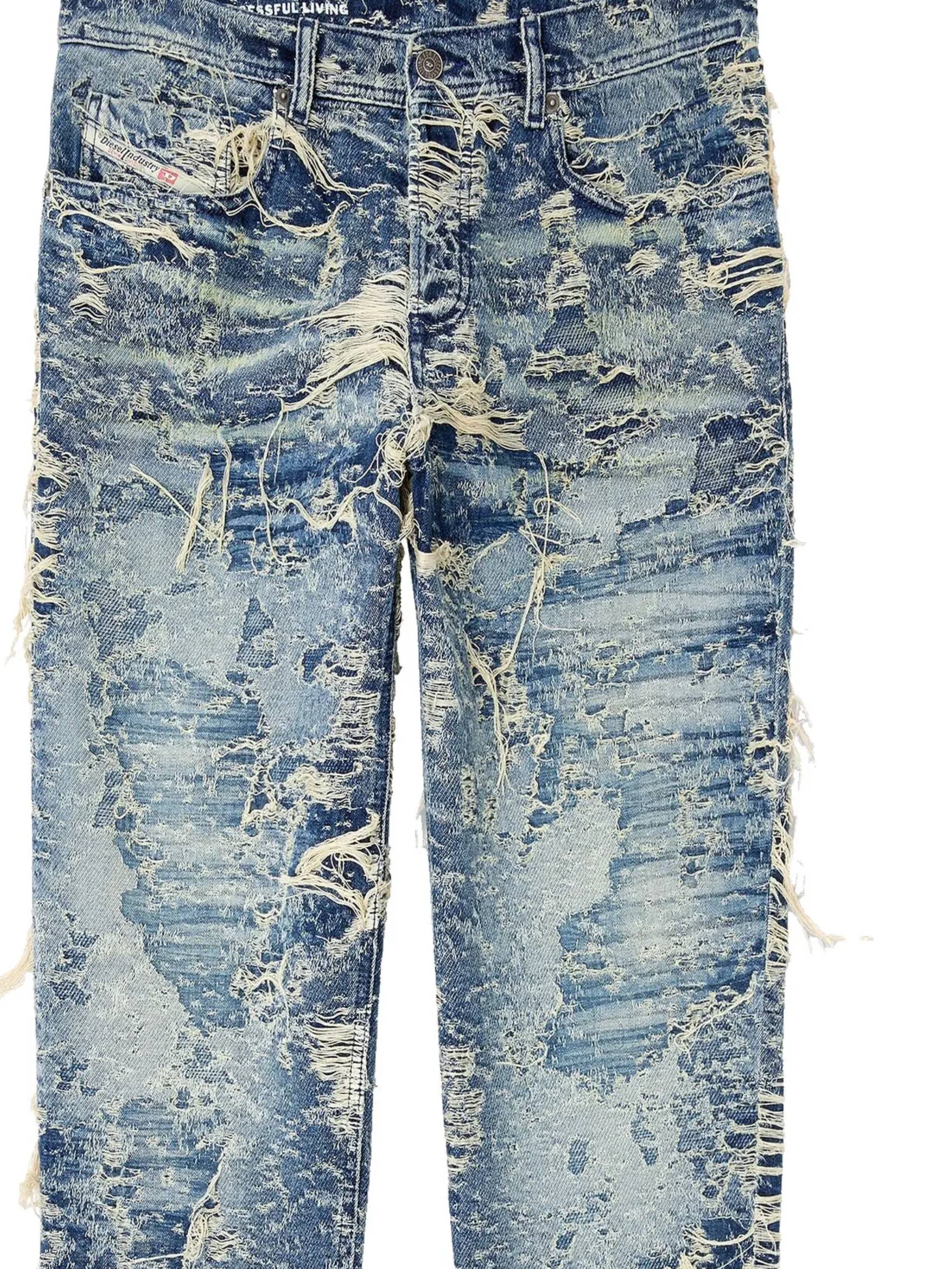 light blue concealed fly and button fastening classic five pockets distressed effect ripped detailing