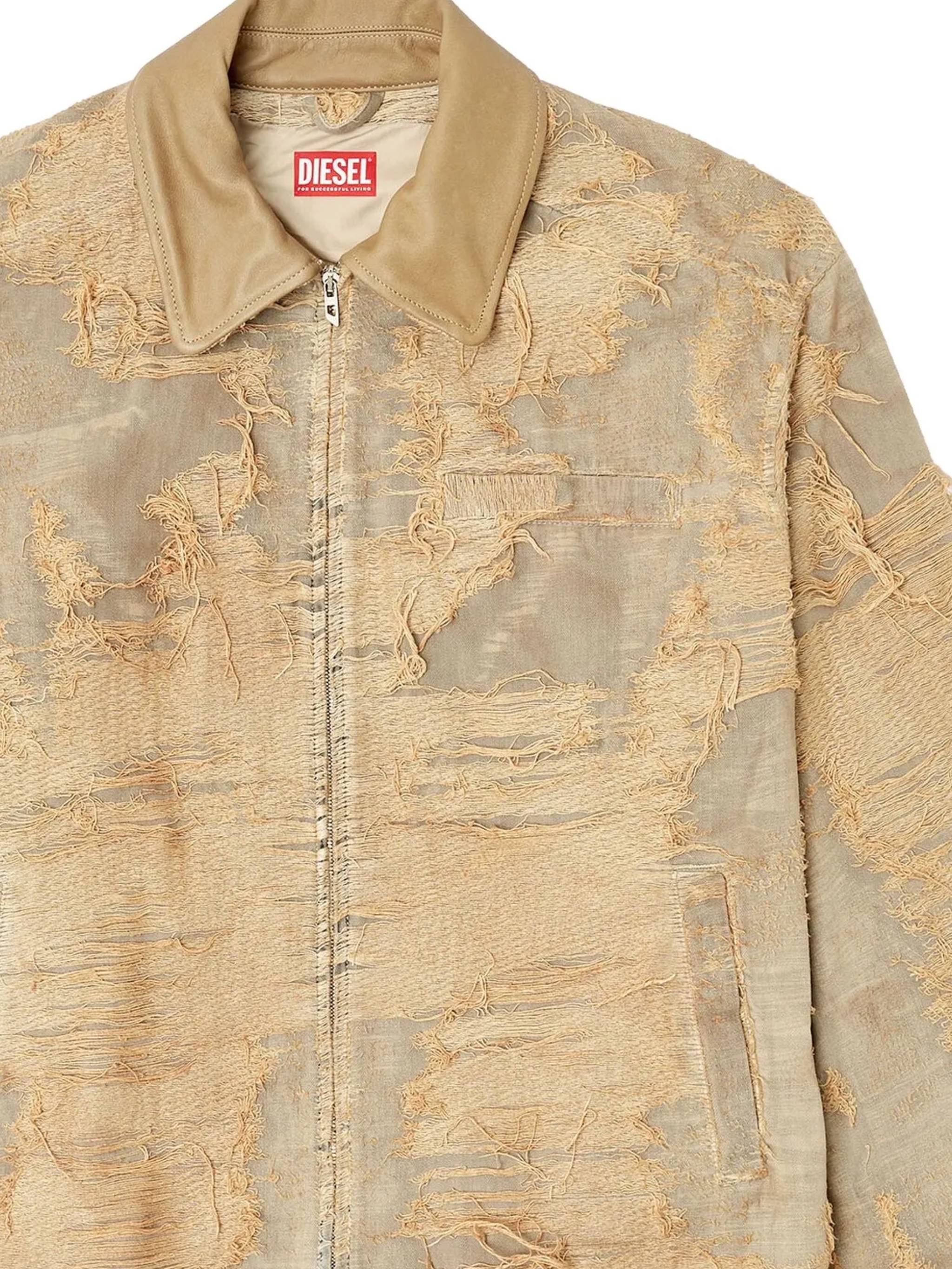 beige front zip fastening chest welt pocket two side welt pockets long sleeves