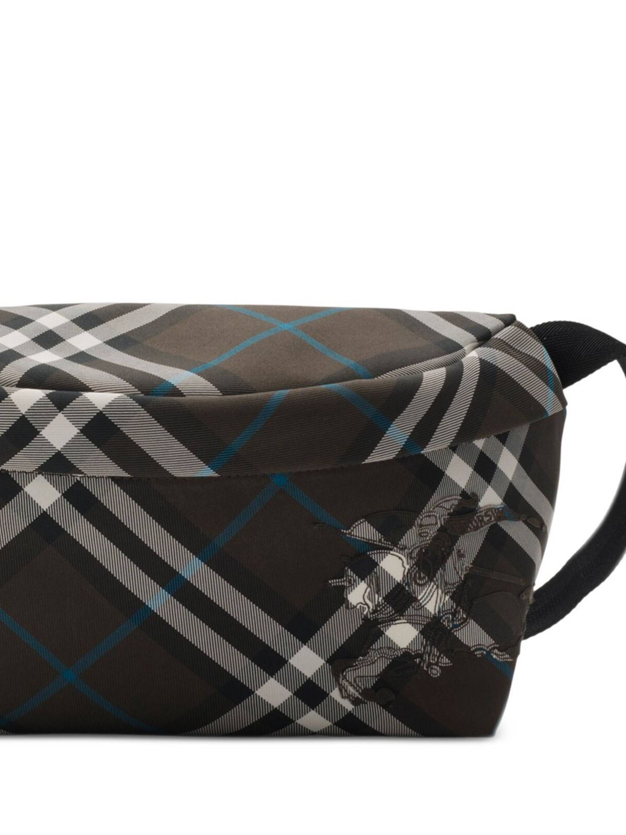 coffee brown Vintage Check pattern top zip fastening adjustable waist strap main compartment full lining