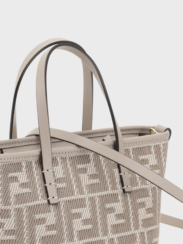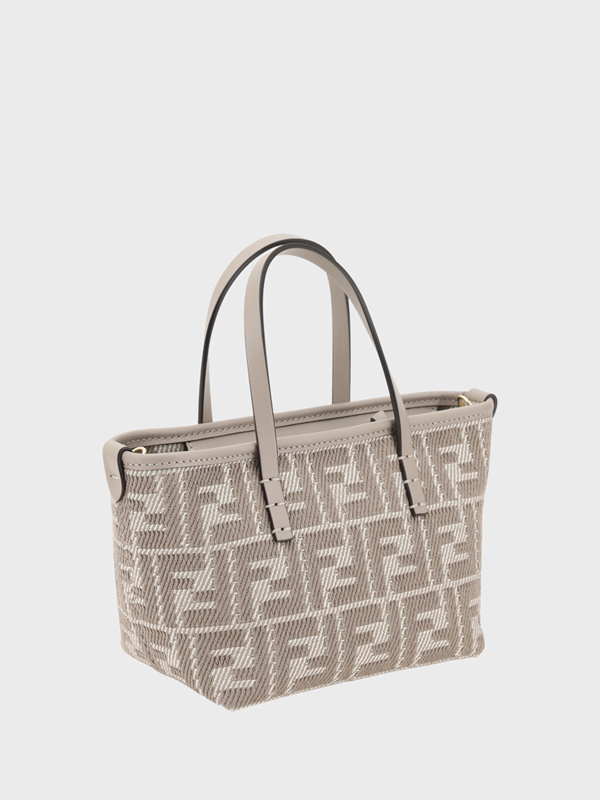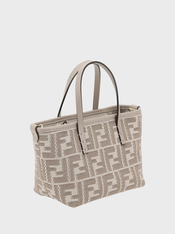 Fendis Roll Mini Handbag is a chic and versatile accessory made of jacquard fabric with a denimeffect FF pattern giving it a modern and refined look The model features two flat leather top handles adding elegance and an adjustable and removable shoulder strap allowing it to be carried either by hand or on the shoulder The top closure is zippered providing security and practicality Inside a single compartment provides enough space for essentials while maintaining a clean and functional designF6E384BD-DFFD-4EF5-9A3C-6E553F2B1D24.JPEG 4120FCD0-6119-4F67-A2D5-295F8B49F87D.JPEG B30AB65D-2393-4A03-A20A-2DAADA70782E.JPEG 6D01EF9B-7D16-45F9-B24A-53311689FE07.JPEG