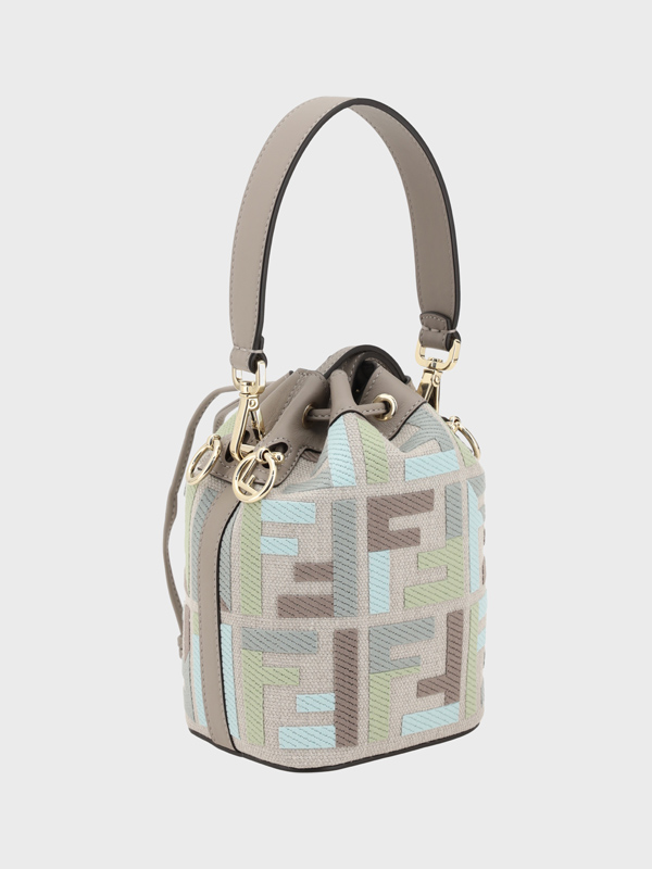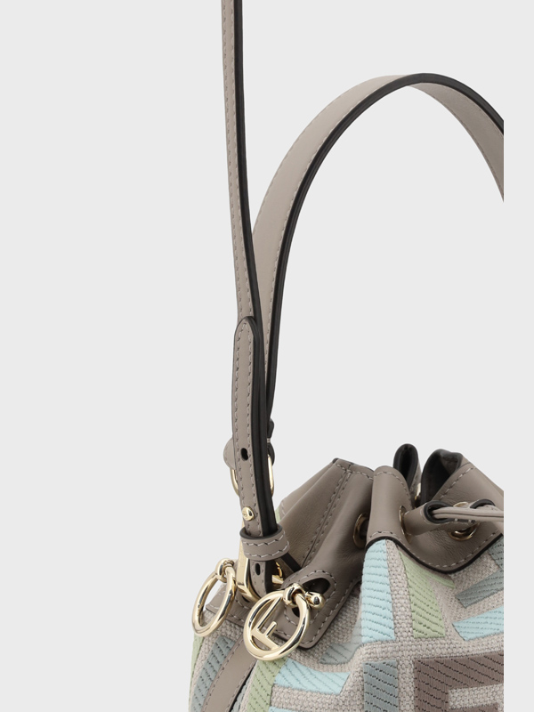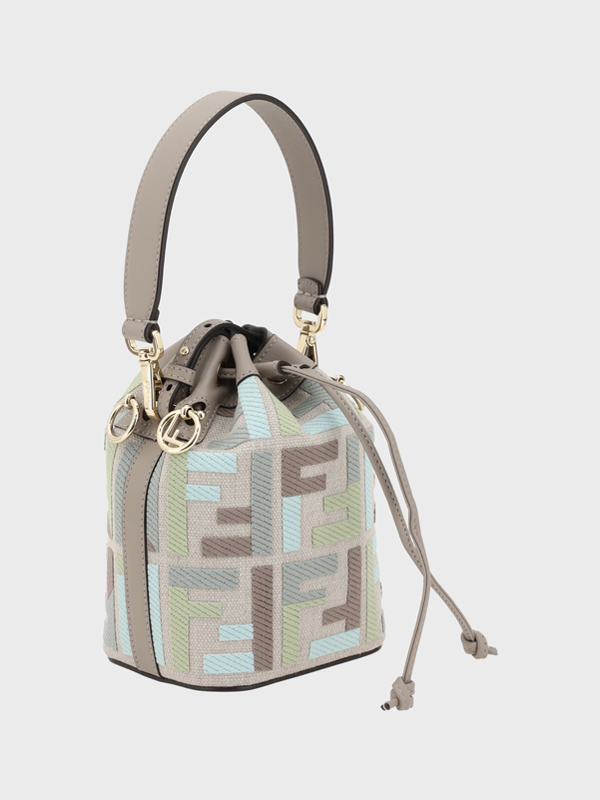 Fendis Mon Tesor linen Bucket Bag is an elegant and versatile accessory perfect for those seeking a mix of functionality and style The flat removable top handle with snap hook offers the option to carry it by hand or clip it on as desired The adjustable and removable shoulder strap allows it to be adapted to different needs allowing it to be worn over the shoulder as well The top drawstring closure provides security while the jacquard weave with the iconic multicolored FF pattern adds a touch of vibrancy and originalityInside the bag has a single compartment perfect for organizing essentials A unique accessory that combines modern design and craftsmanship
