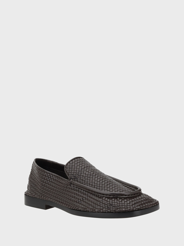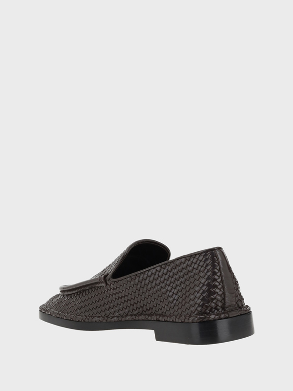 Bottega Venetas leather Daddy Loafers are a modern and sophisticated interpretation of the classic loafer The brands iconic polished woven leather design gives the model a distinctive and elegant look The square toe adds a modern touch while the leather block heel offers comfort and stability completing the look with an accent of sophistication The logoed insole further reinforces the brands identity