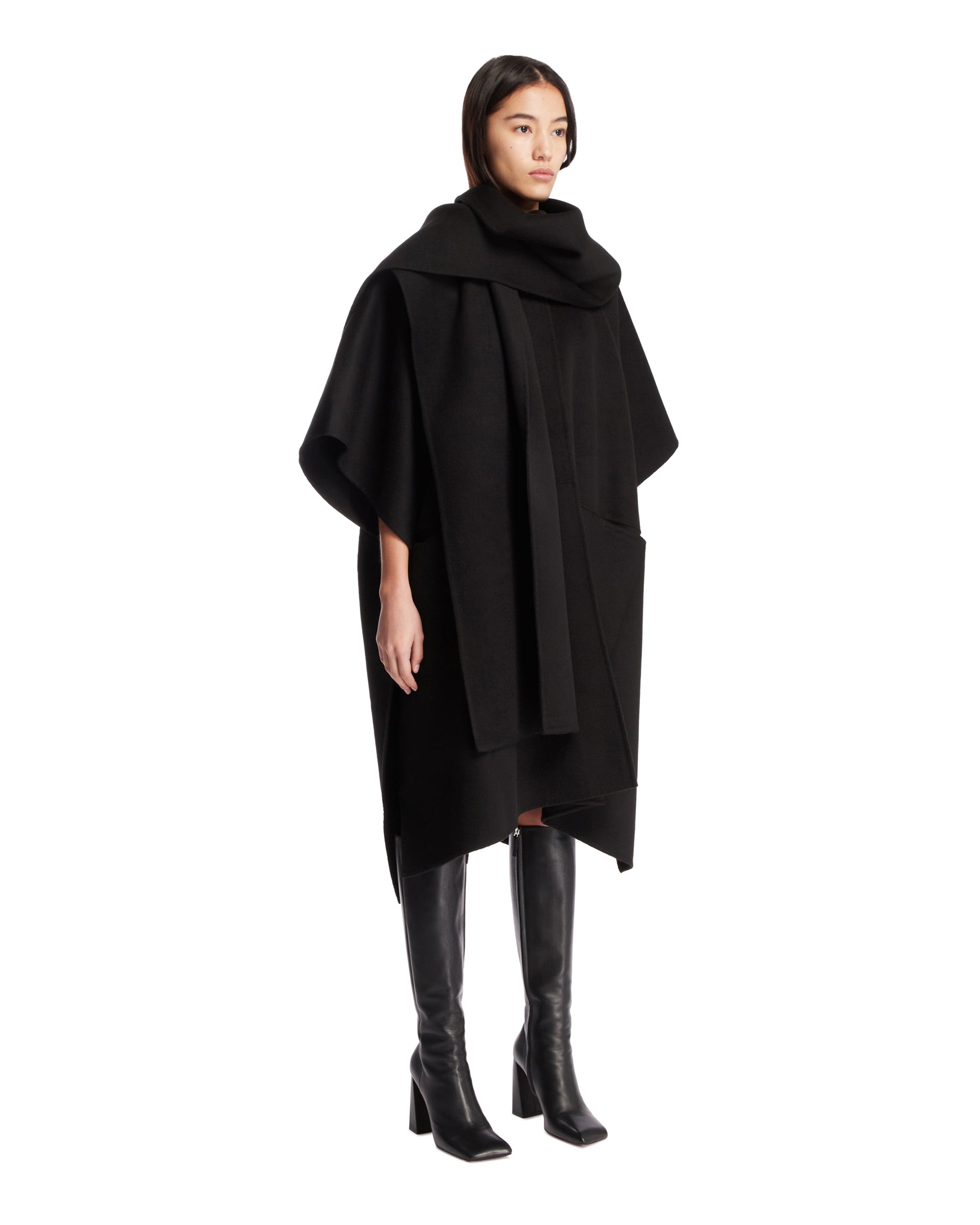 블랙 울 케이프 위드 스카프 카라