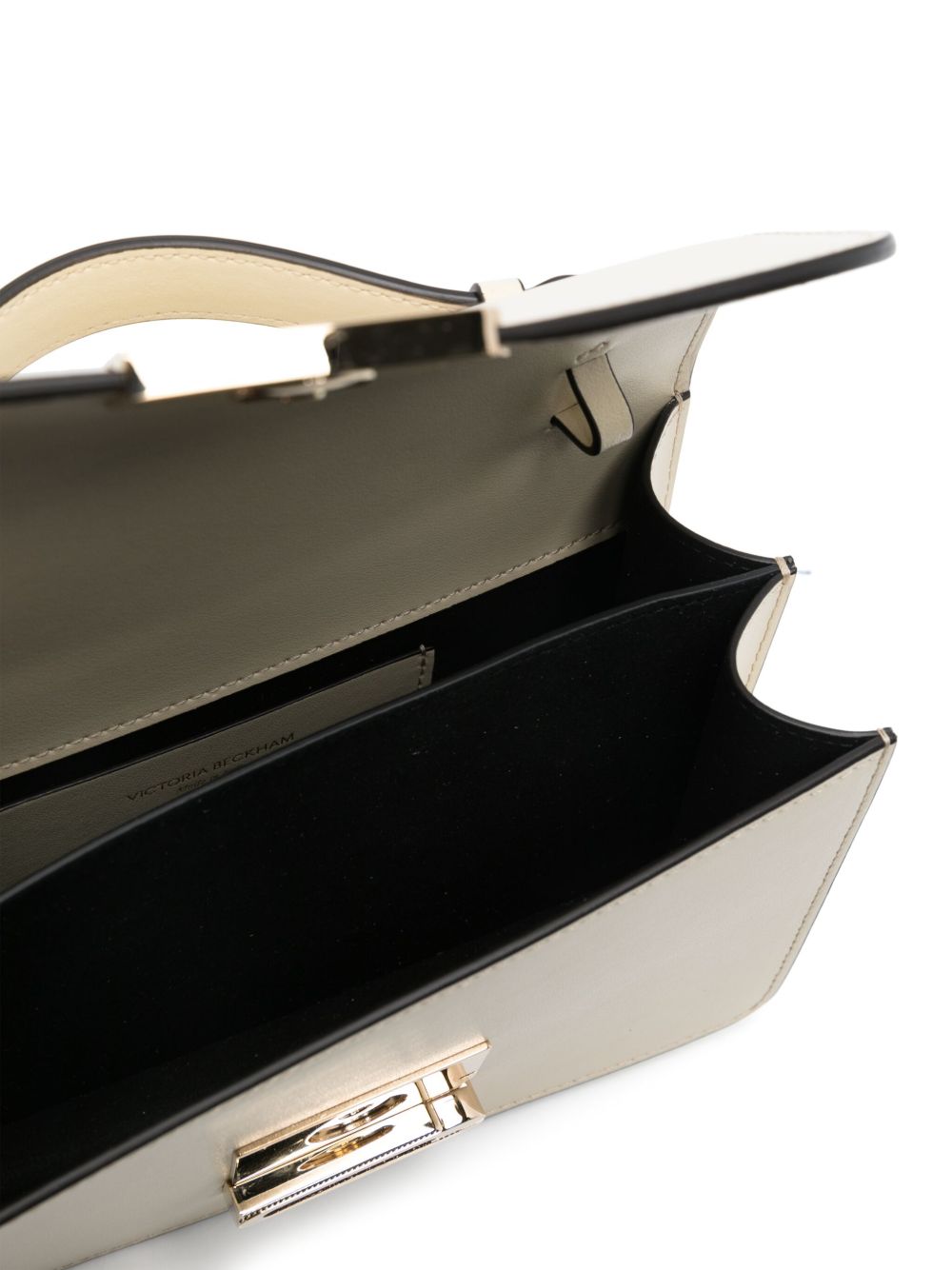 light beige foldover top with magnetic fastening single flat top handle adjustable detachable shoulder strap This piece comes complete with a protective dust bag.