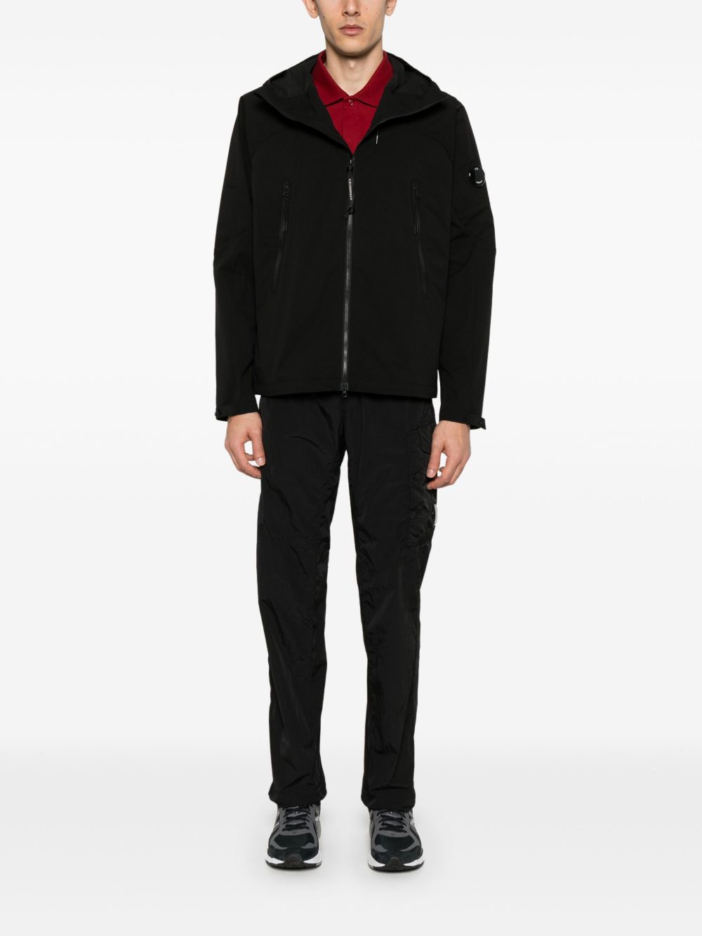 black elasticated waistband with internal drawstring two side slit pockets side cargo pocket C.P. Company suggests removing any detachable accessories before washing.