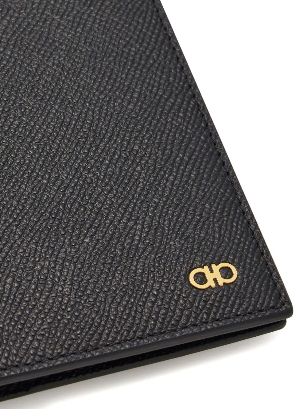 black leather grained texture Gancini plaque bi-fold design internal card slots