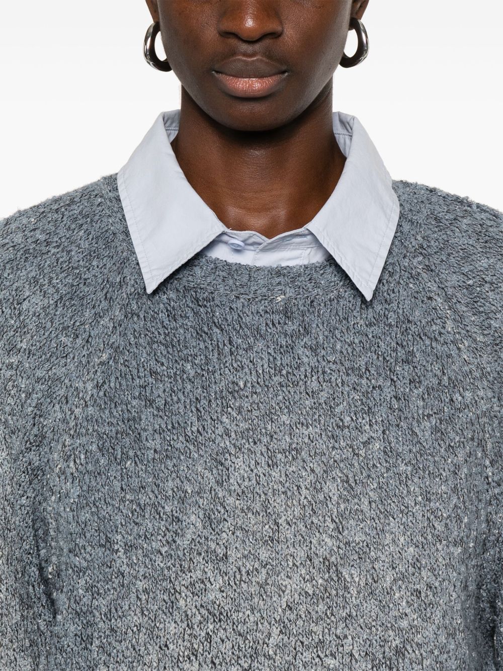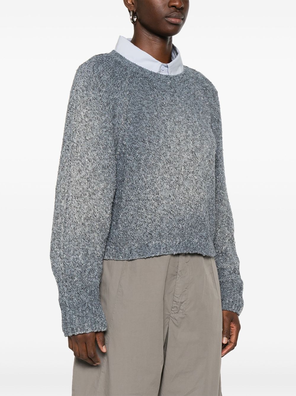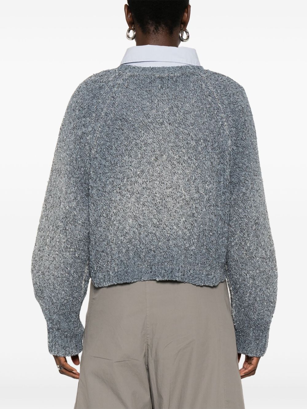 blue-grey ribbed cuffs and hem crew neck long raglan sleeves