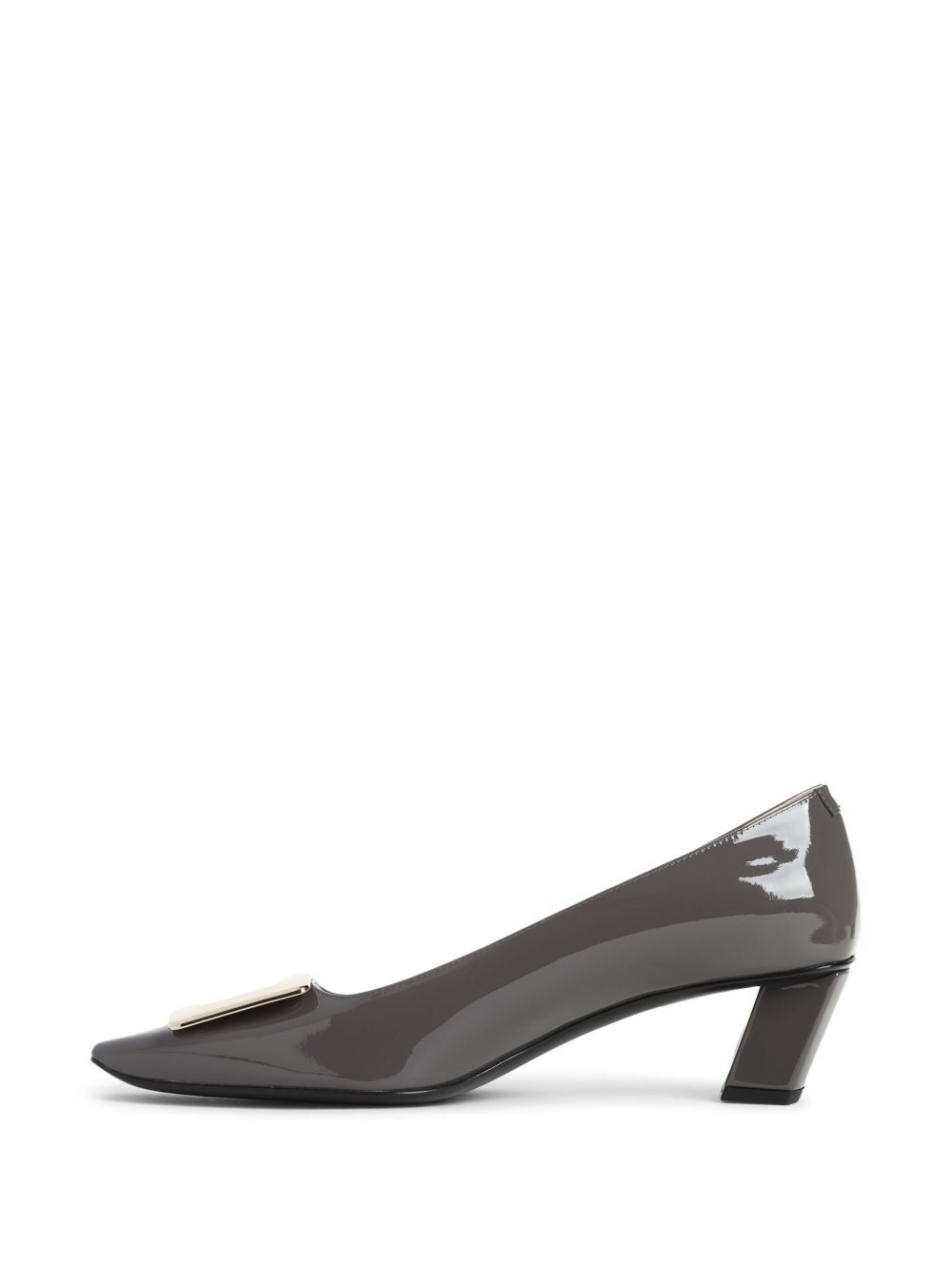 brown slip-on style patent finish decorative buckle detail square toe