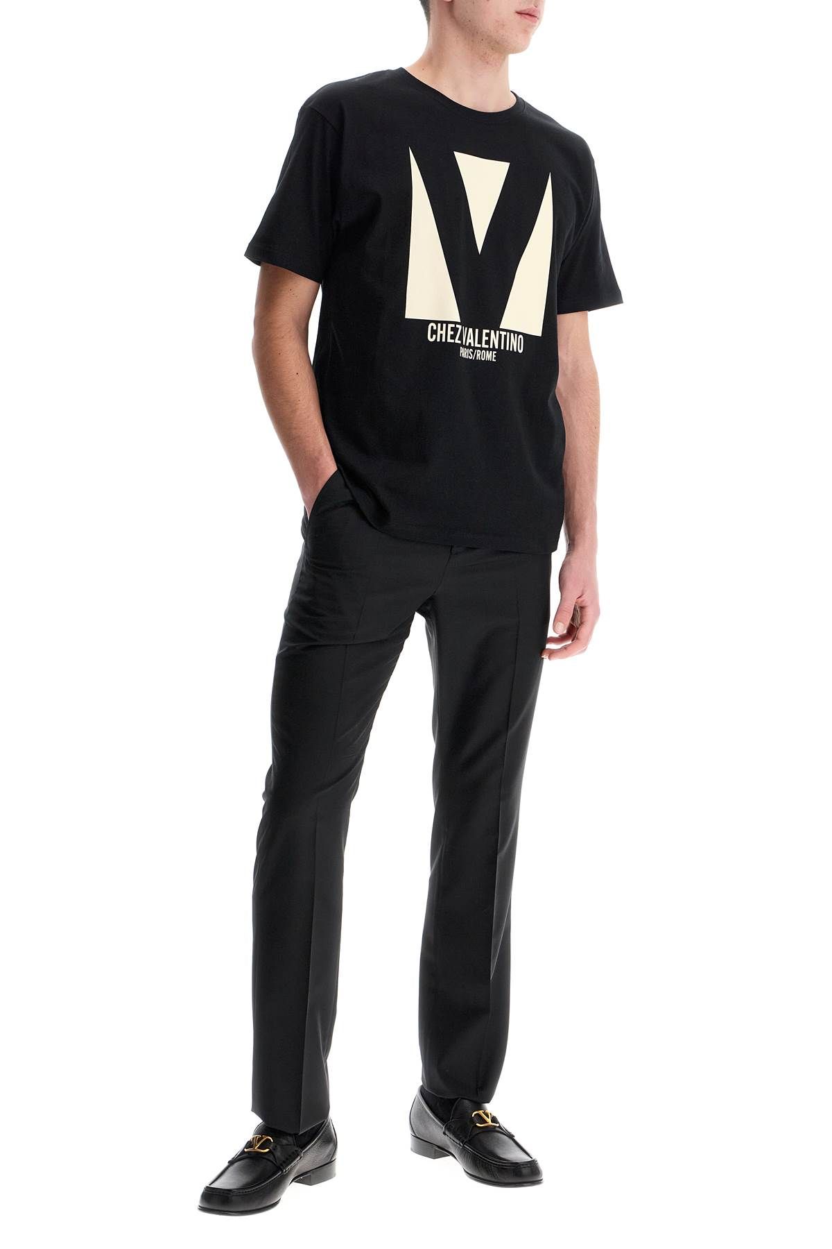 Valentino crew neck t-shirt in pure cotton jersey with "Chez Valentino" graphic print on the front