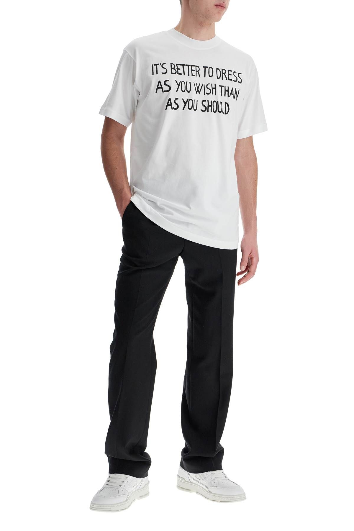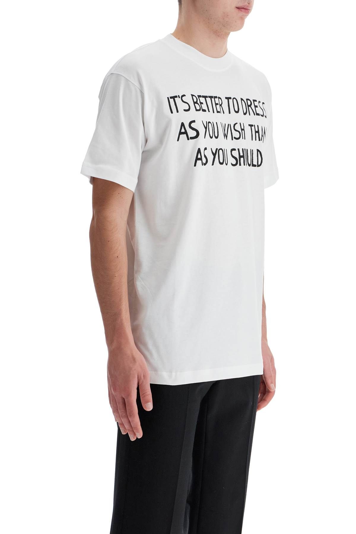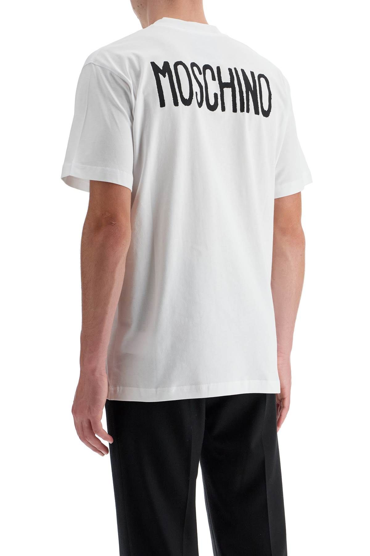 Short-sleeved Moschino t-shirt in lightweight cotton jersey with slogan print on the front and logo on the back