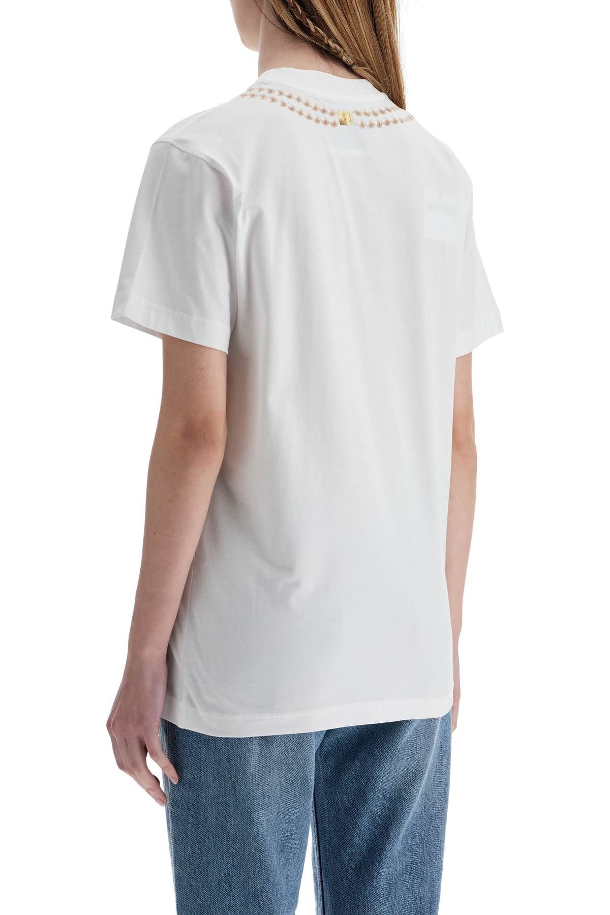 > 화이트 코튼 티셔츠 위드 크루아상 and pearls 프린트