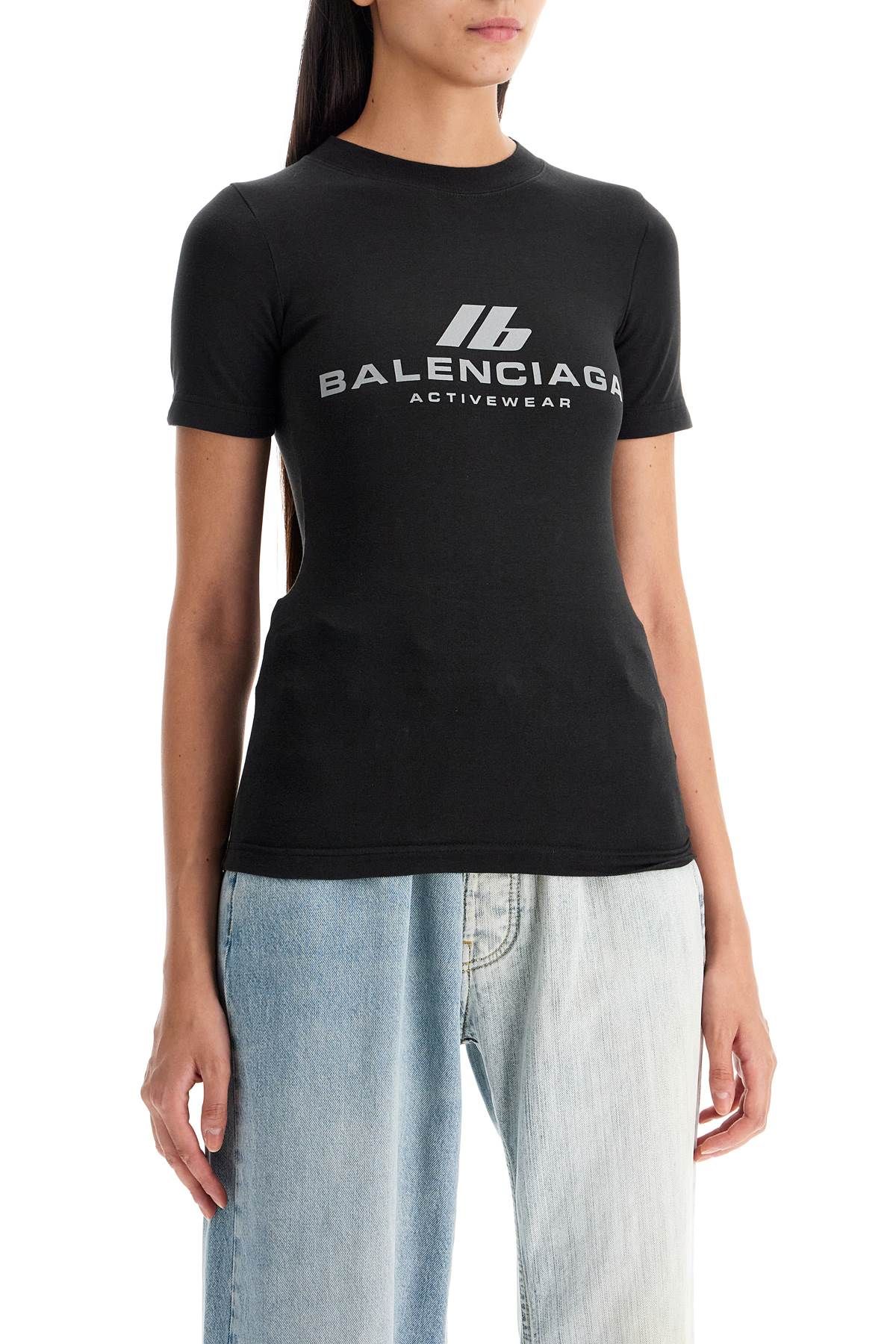 This fitted crew neck t-shirt is made of stretch cotton jersey and features a reflective "Balenciaga Activewear" logo print on the front