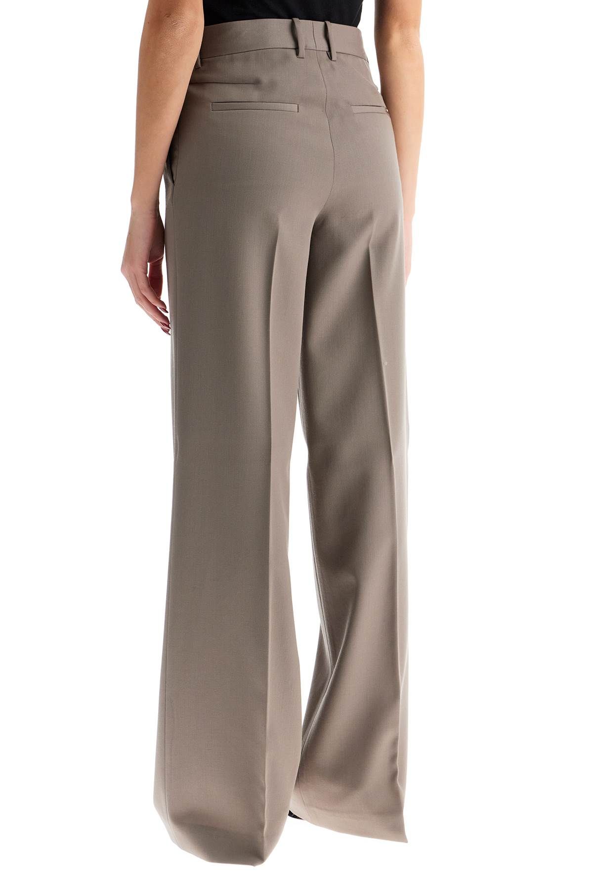 The Attico's tailored cigarette pants are made of virgin wool gabardine with a pressed crease. They feature a zip and concealed hook closure, French side pockets, and welt back pockets, one of which is finished with a branded metal element. The model is 177 cm tall and wears an IT size 38.
