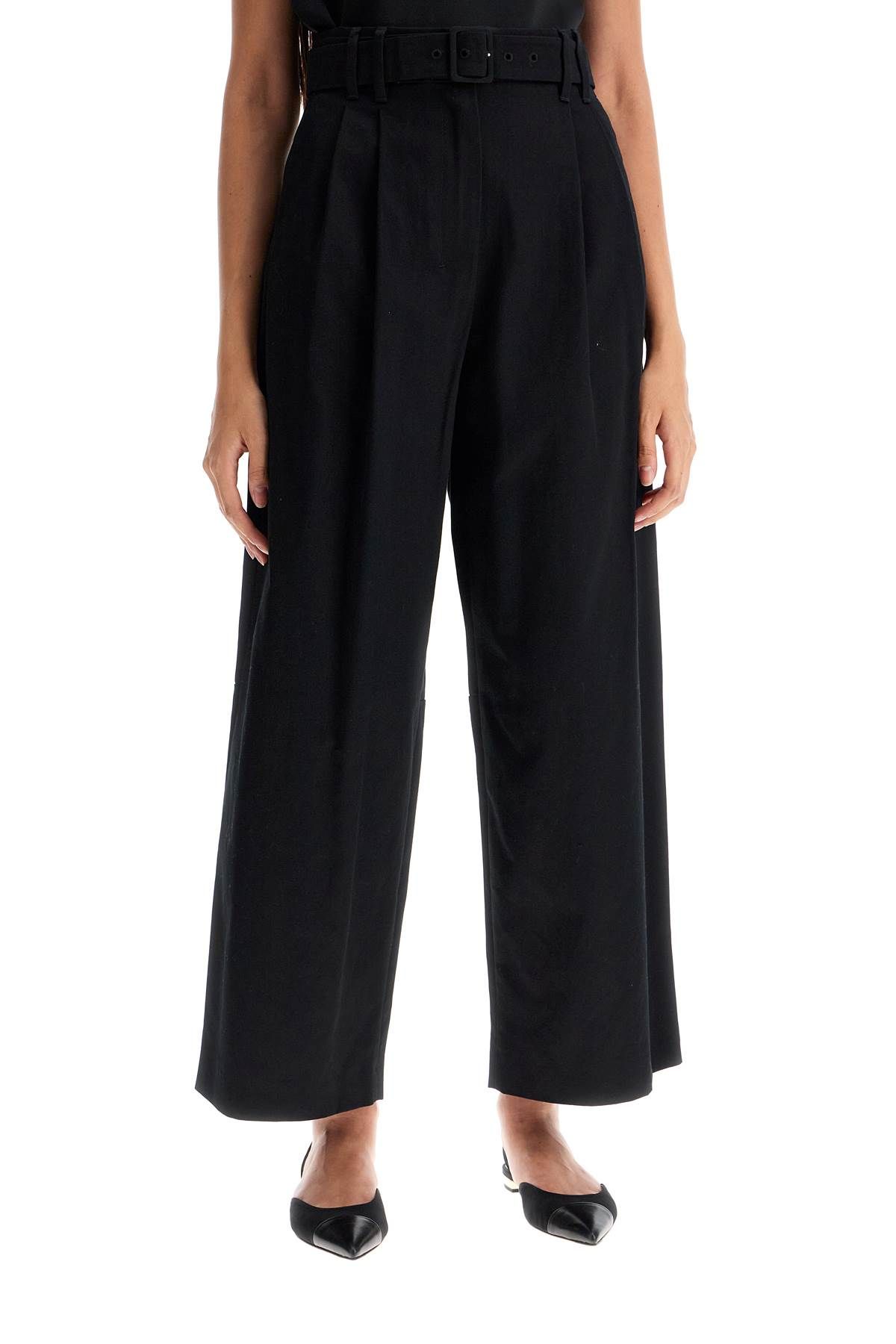 'S Max Mara high-waisted trousers made of pure cotton gabardine, featuring barrel legs with double pleats on the front