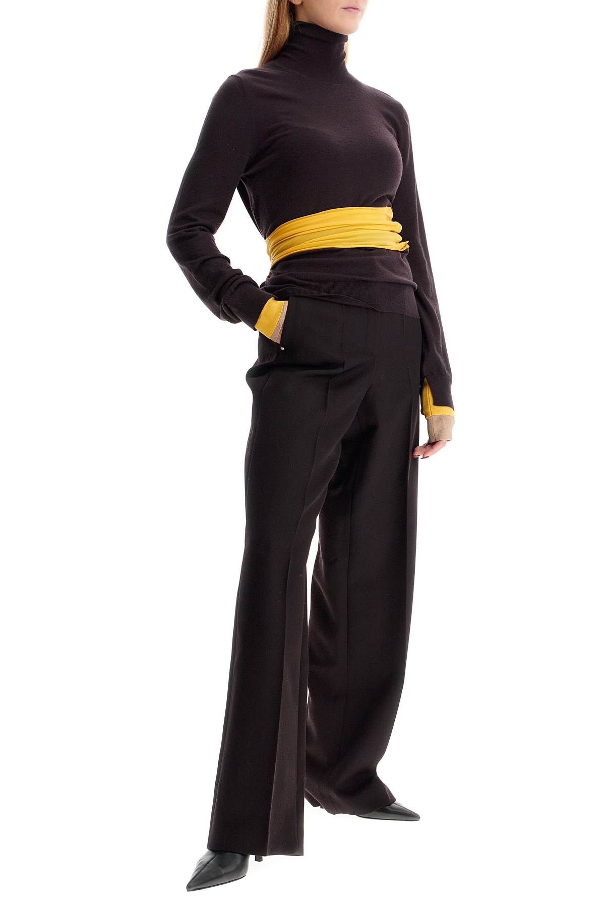 Fendi high-waisted trousers in pure virgin wool grain de poudre, featuring a straight and wide cut without a waistband, finished with pressed pleats