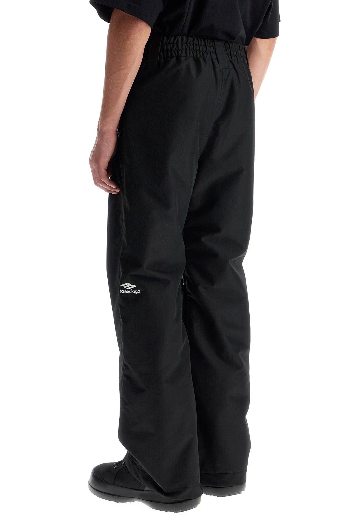 Ski pants from the Skiwear collection by Balenciaga, made of ripstop fabric with warm padding in a silk blend. They feature a hidden button and zip closure, pockets, and taped zippers at the bottom, as well as belt loops at the waist. Finished with snow gaiters at the bottom and completed with ventilation openings with zippers on the thighs. Relaxed fit with a straight cut. The model is 182 cm tall and wears an IT size 46. Emb