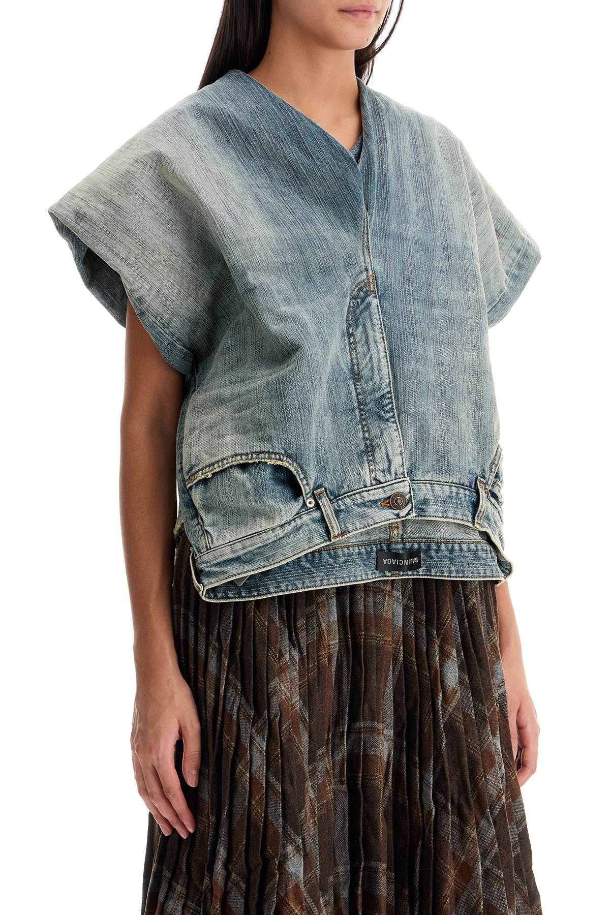 Crafted in distressed denim, this Balenciaga top features a trompe l'oeil construction that reinterprets a pair of pants