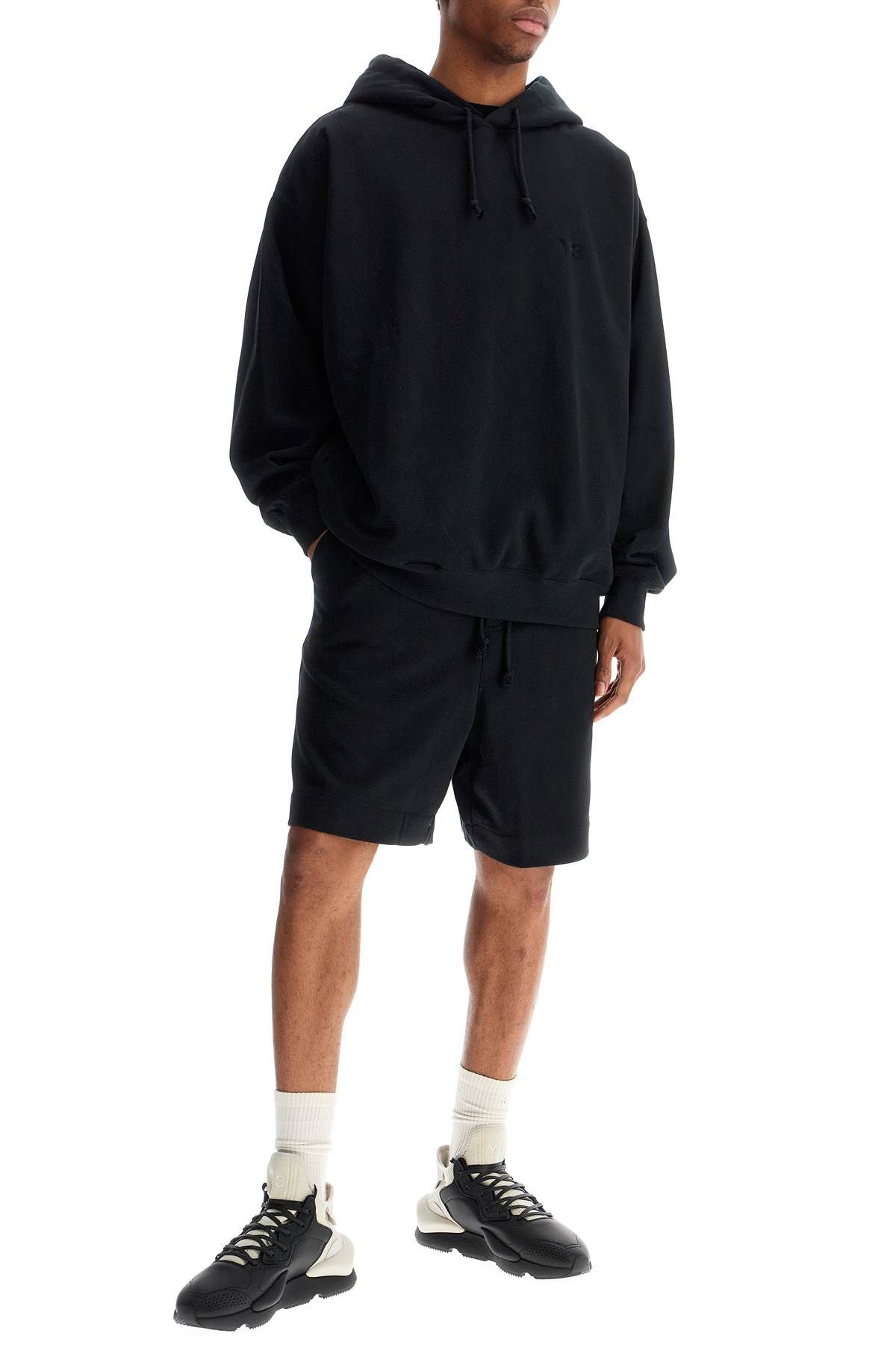 The Y-3 men's hoodie combines urban style and sustainability. Made from cotton and recycled polyester with a loose fit and adjustable hood. Minimalist design for the modern fashion-conscious man