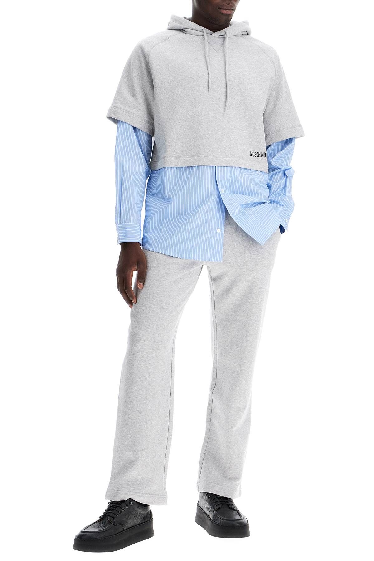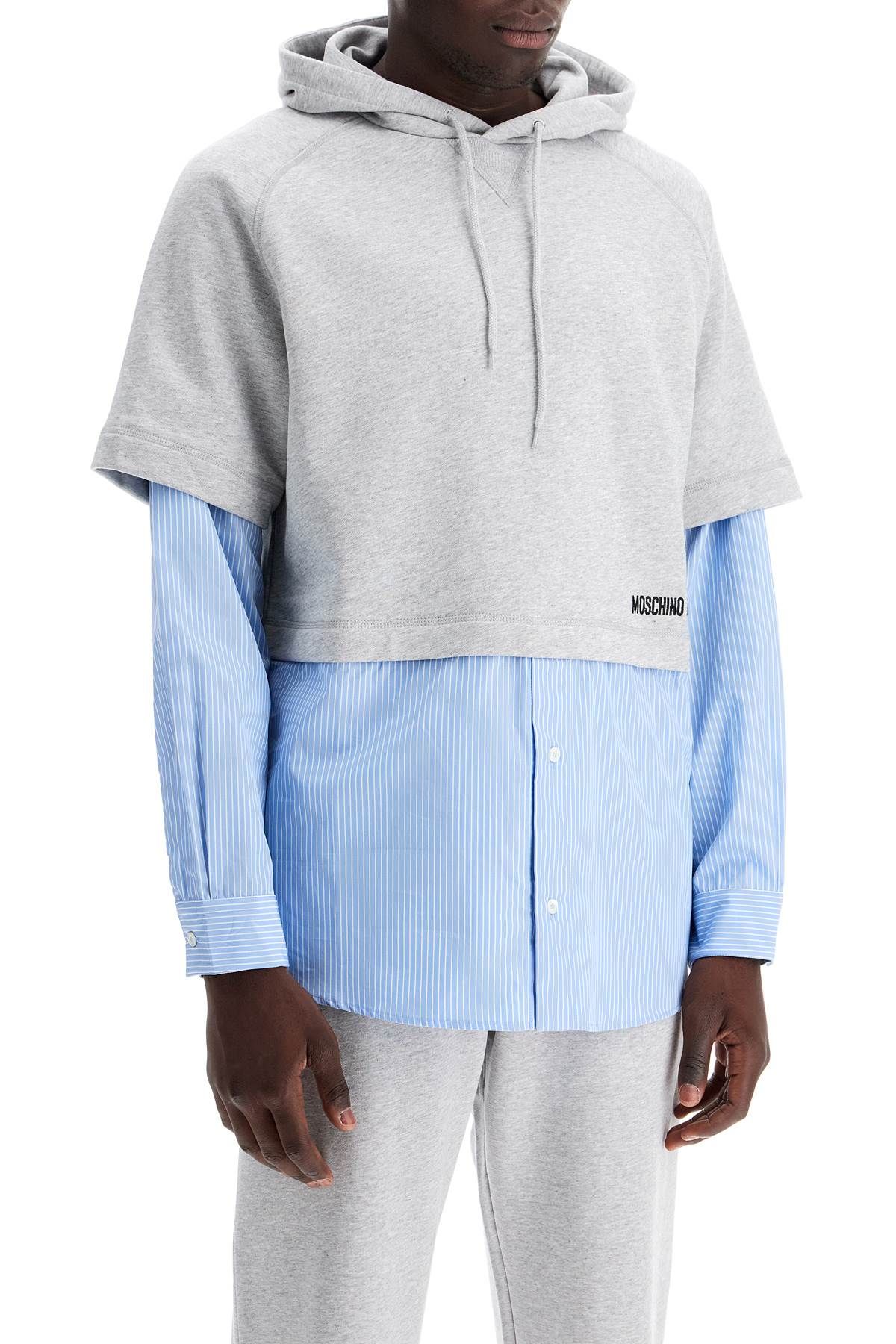 Moschino presents a hybrid design with this product, featuring a cotton jersey sweatshirt-style top with an adjustable drawstring hood and detailed with contrasting embroidered logo lettering