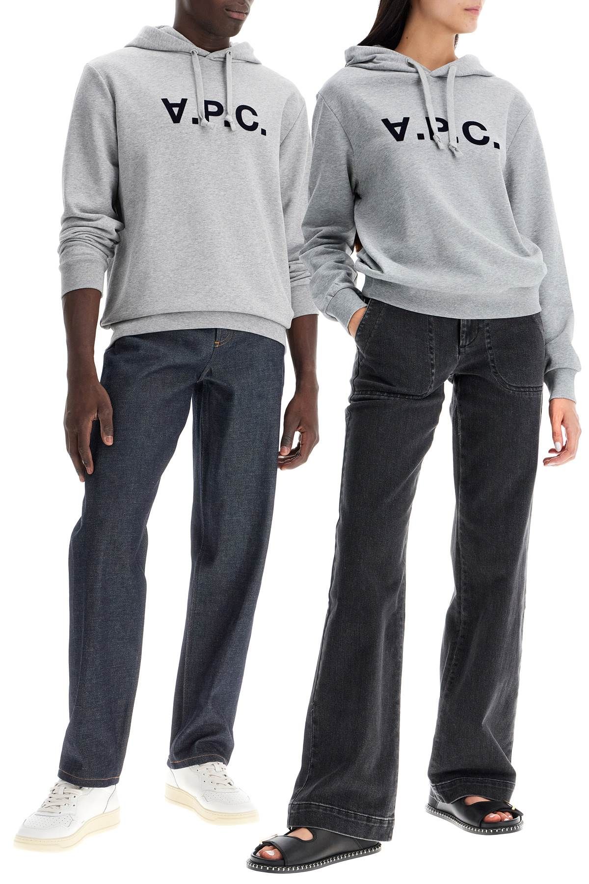 This A.P.C. sweatshirt is made of loopback organic cotton jersey with a large flocked VPC logo across the chest. It comes in a regular fit with a drawstring hood and ribbed trims. Our male model is 187 cm tall and wears a size L. Our female model is 177 cm tall and wears a size XS.