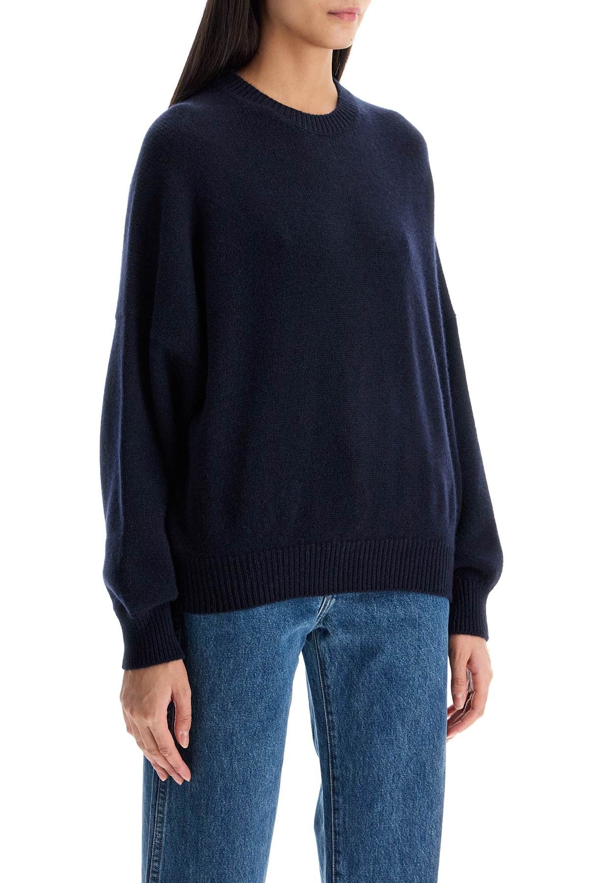 The Margaux pullover by Khaite is made of cashmere knit, with a minimal design and loose fit. The ribbed edges add a touch of texture to the piece. The model is 177 cm tall and wears size XS.