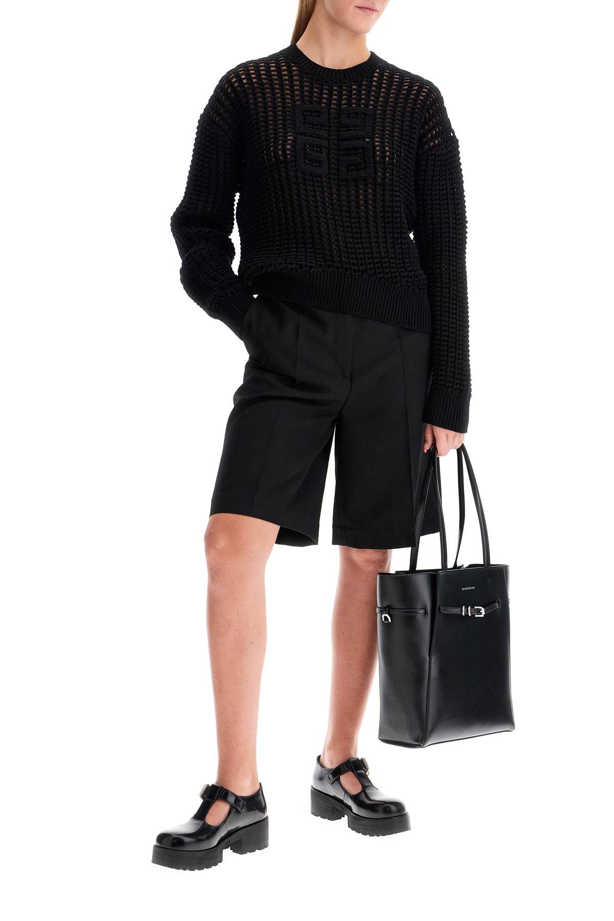 This Givenchy crew neck pullover is made of perforated wool and cashmere knit, adorned with an oversized 4G logo crocheted design