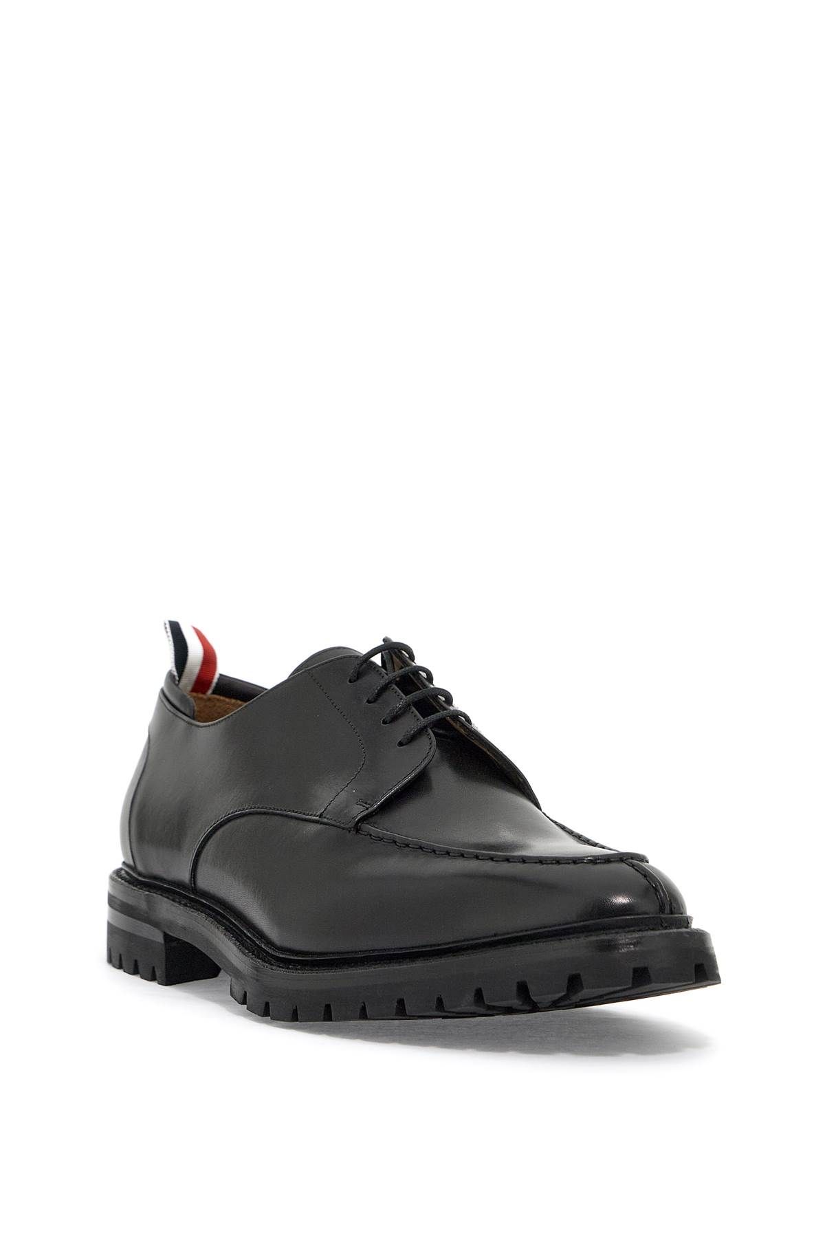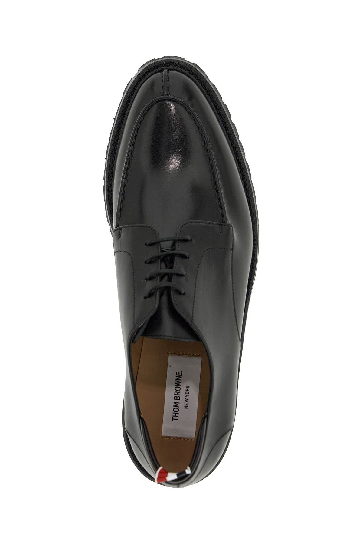 Derby Apron Stitch di Thom Browne realizzati in pelle liscia con iconica linguetta in grosgrain tricolore sul tallone