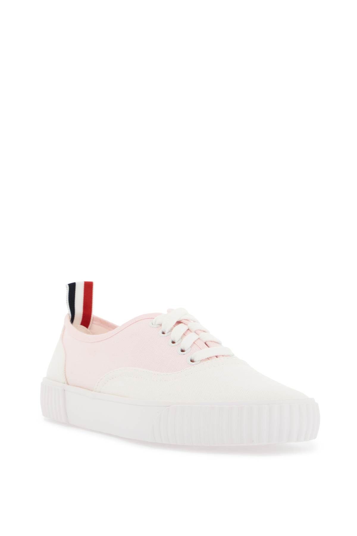 The Funmix Heritage sneakers by Thom Browne are made of color-blocked cotton canvas with flat laces, an unlined interior with a removable insole, rubber sole, and iconic tricolor grosgrain tongue