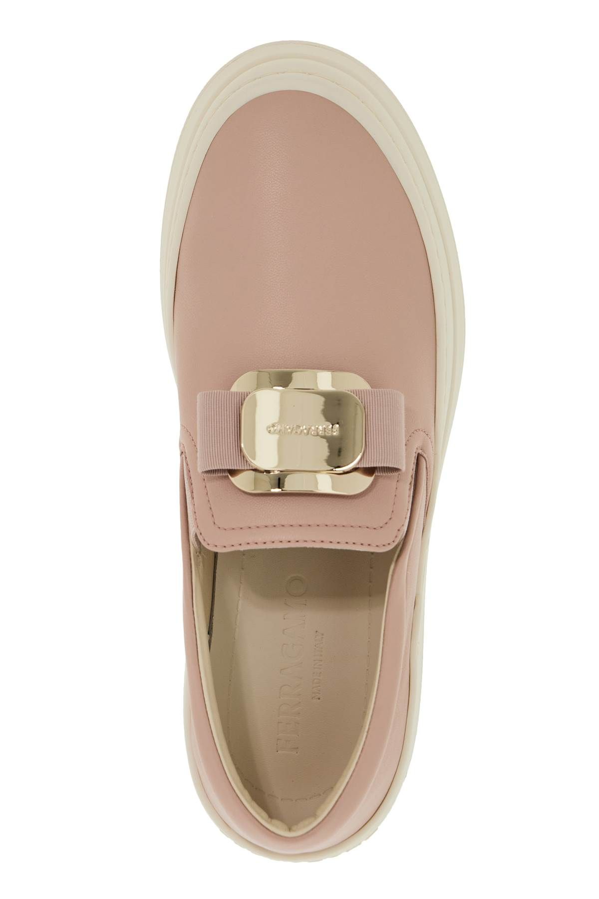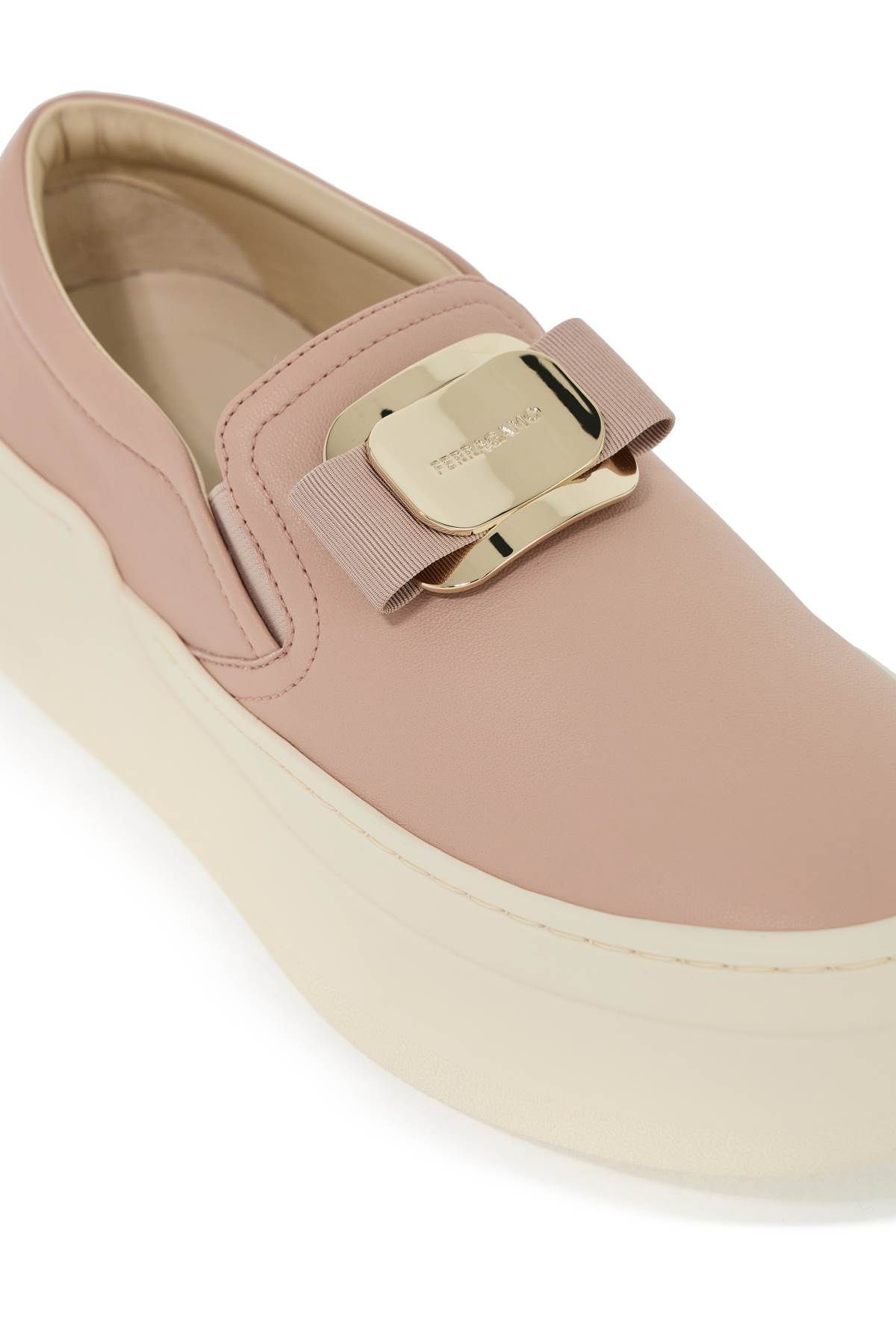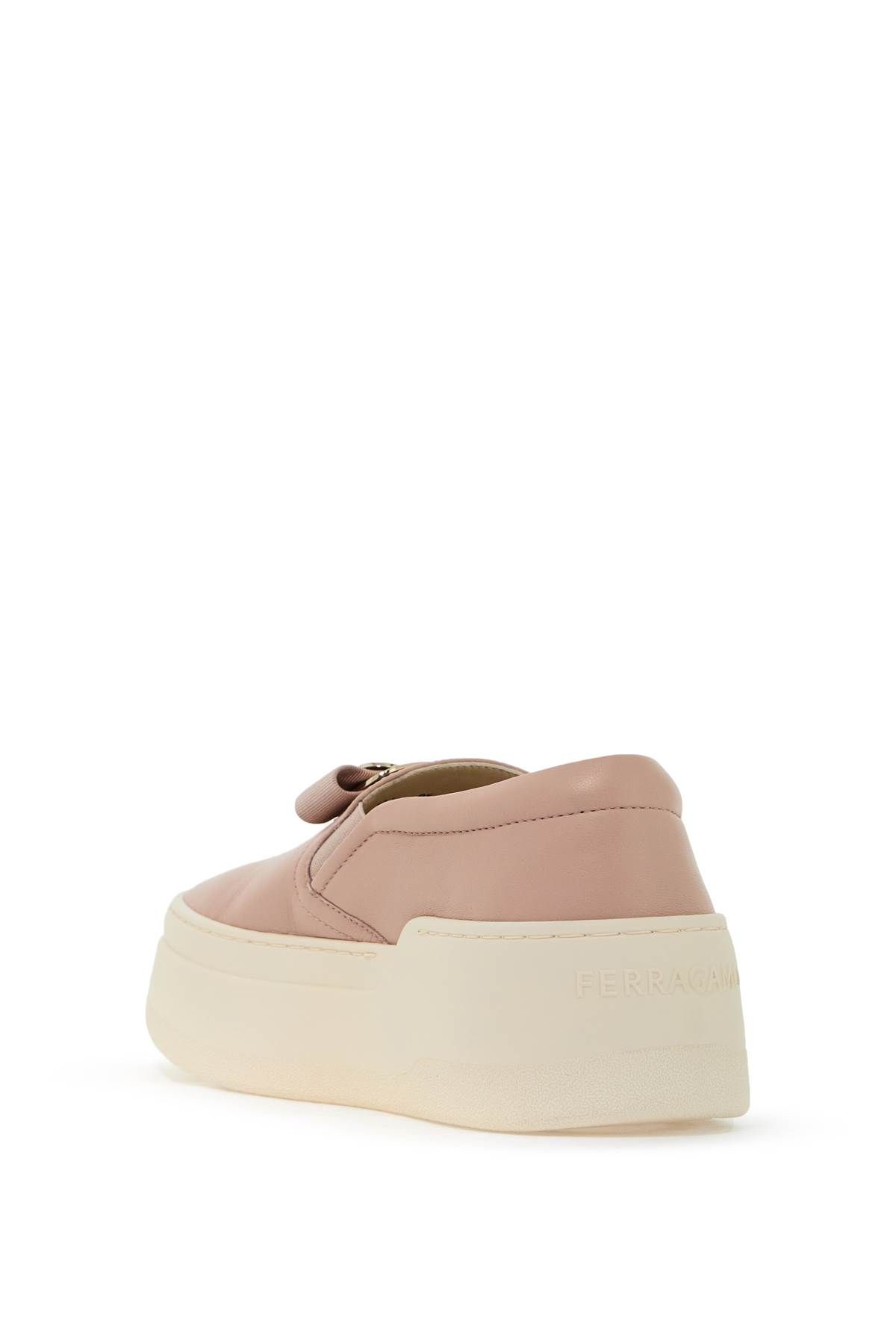 FERRAGAMO slip-on sneakers made of soft nappa leather and enriched with the new golden Vara buckle, featuring a grosgrain bow for a feminine touch