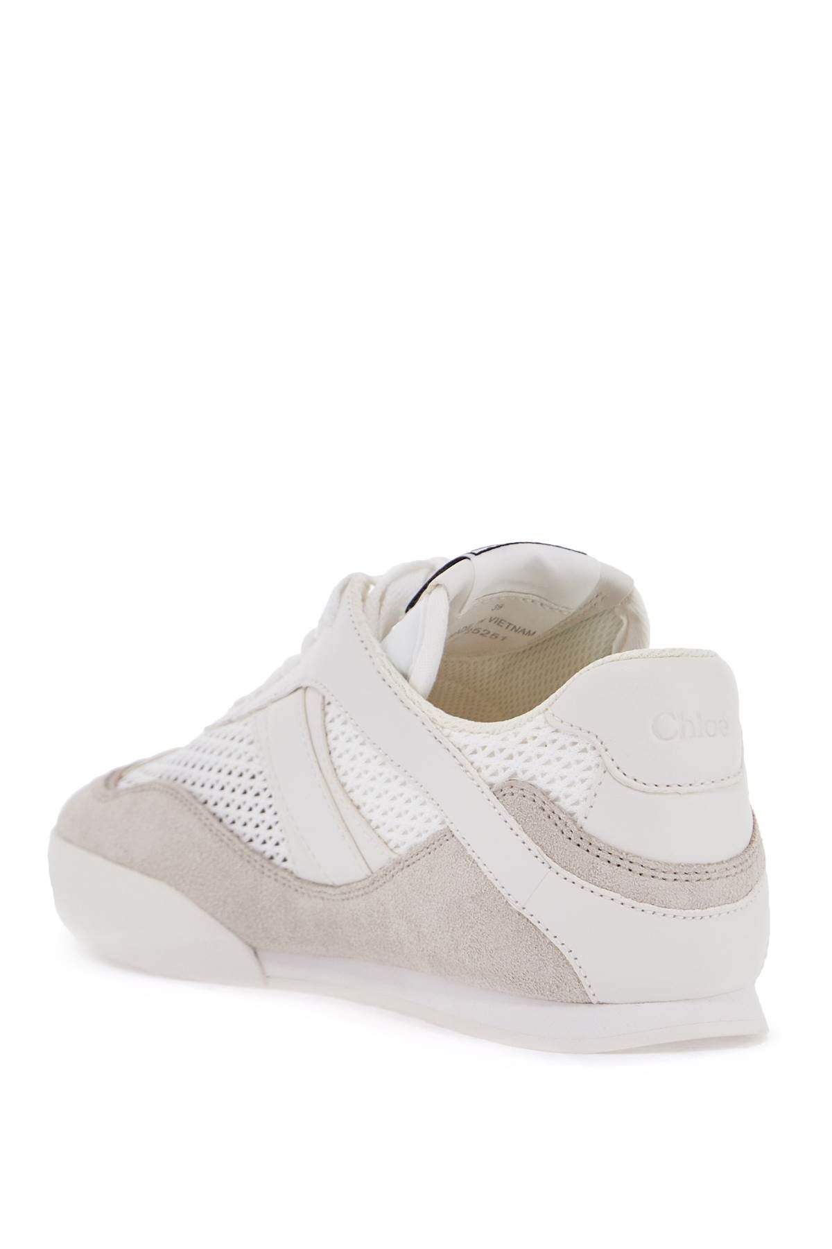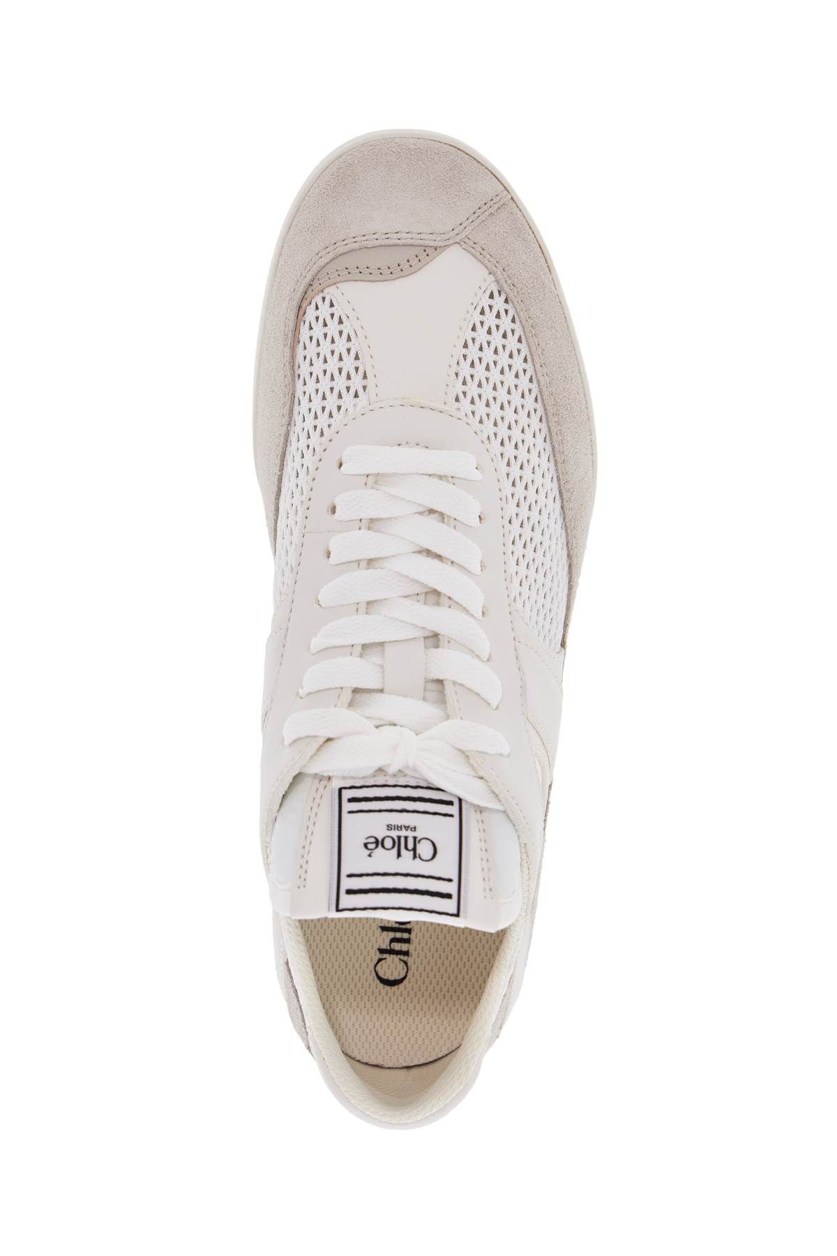 These ChloAⓒ Kick sneakers, inspired by the world of classical dance and boxing, feature a color-block layered upper made of smooth leather, suede, and recycled mesh. Logo patch on the tongue, embossed logo on the side and spoiler, partially lined interior in fabric with a removable wedge insole that adds height and support to the model. Rubber sole.