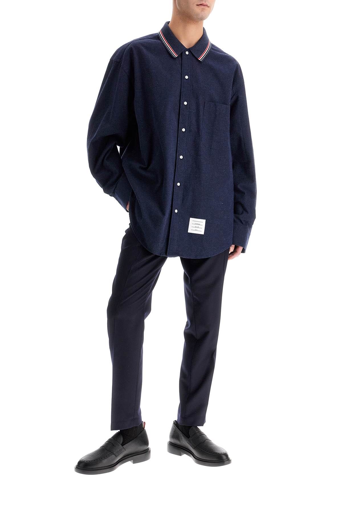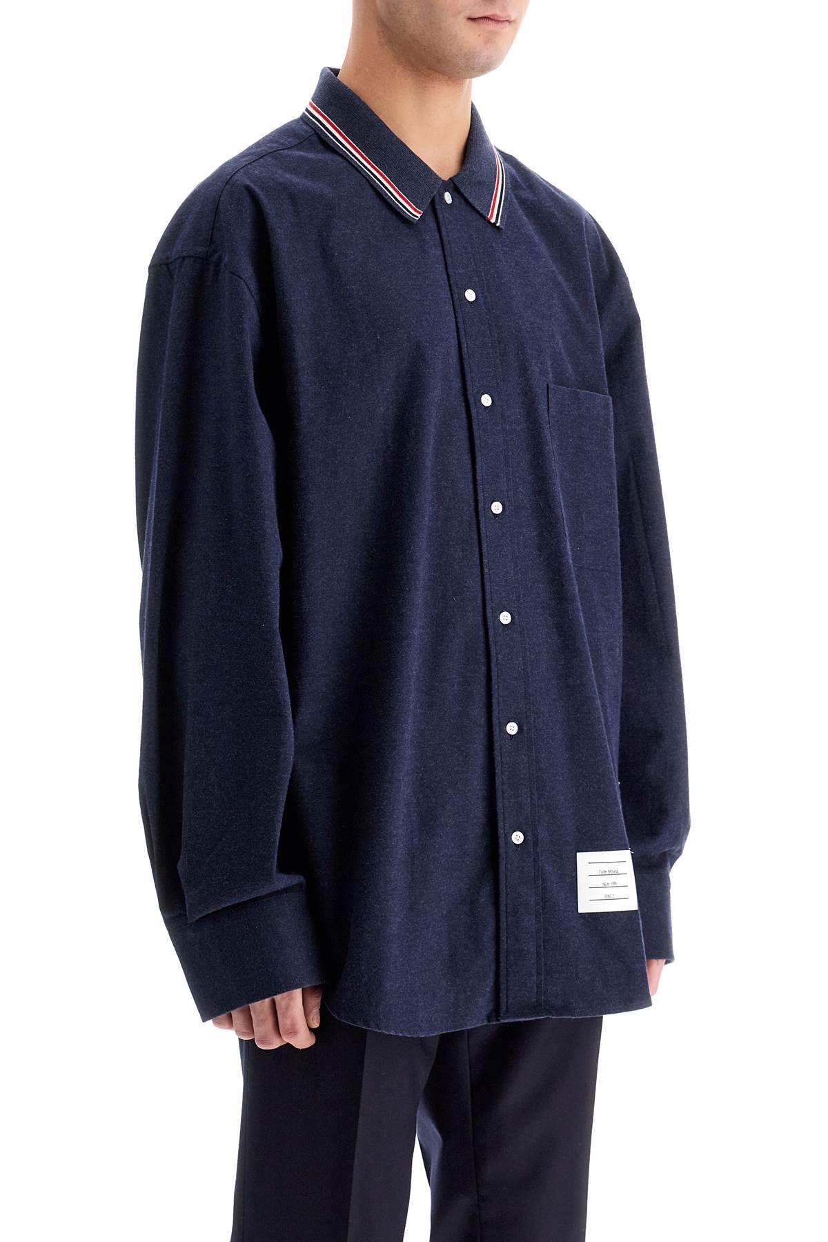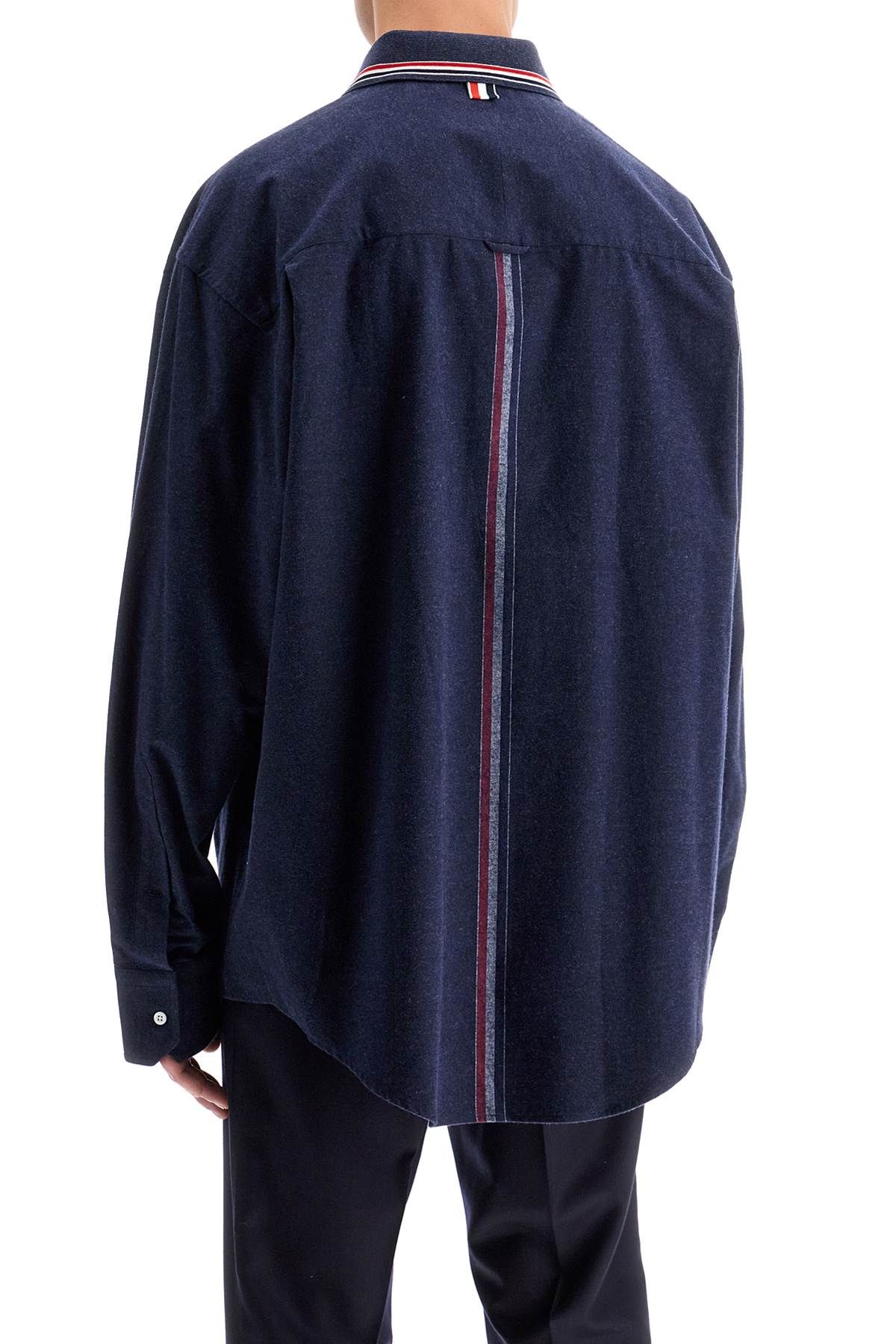 This oversized Thom Browne shirt is made of pure cotton flannel and features the iconic tricolor band inlaid on the back and a striped ribbed collar