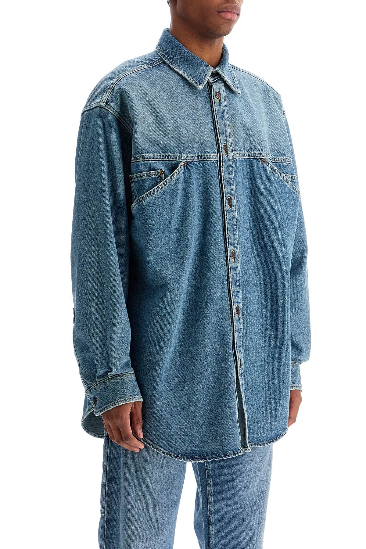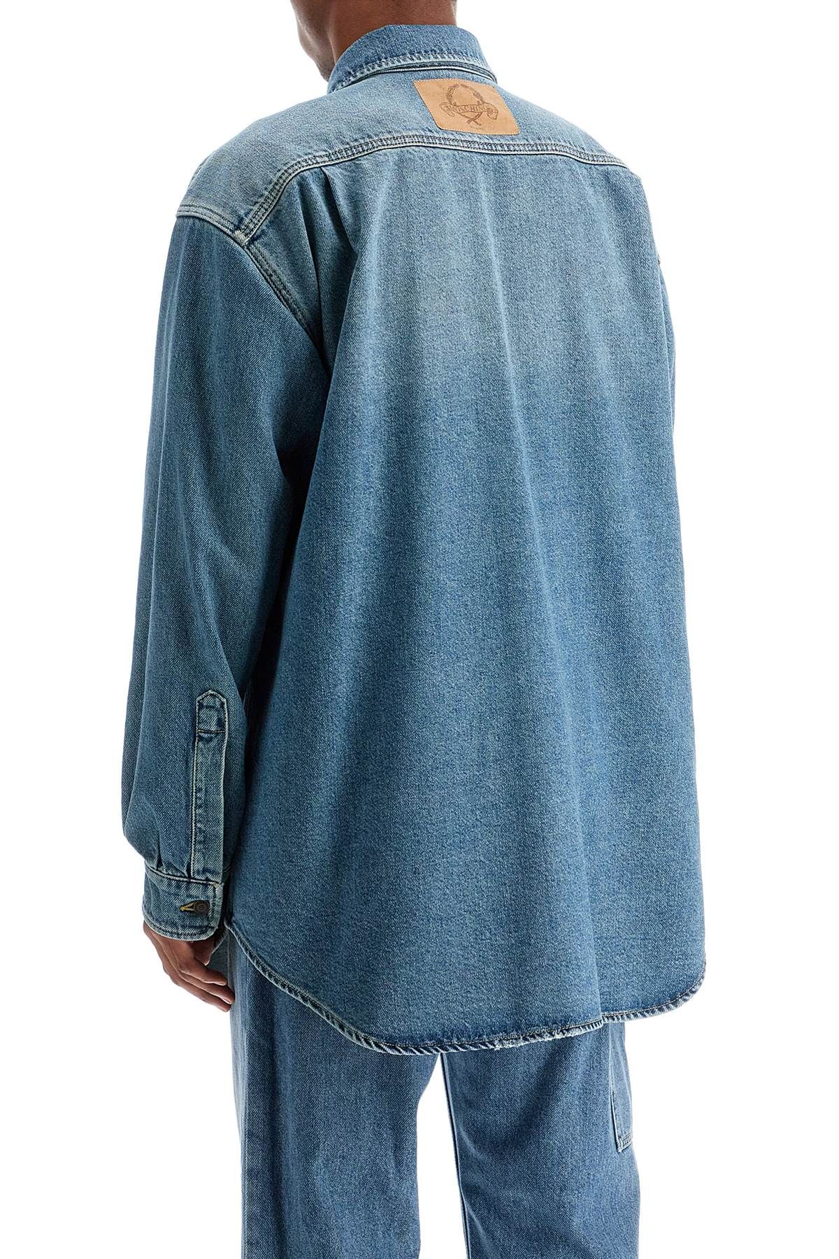 Crafted in distressed denim, this Moschino shirt has a straight and relaxed fit with four pockets on the chest