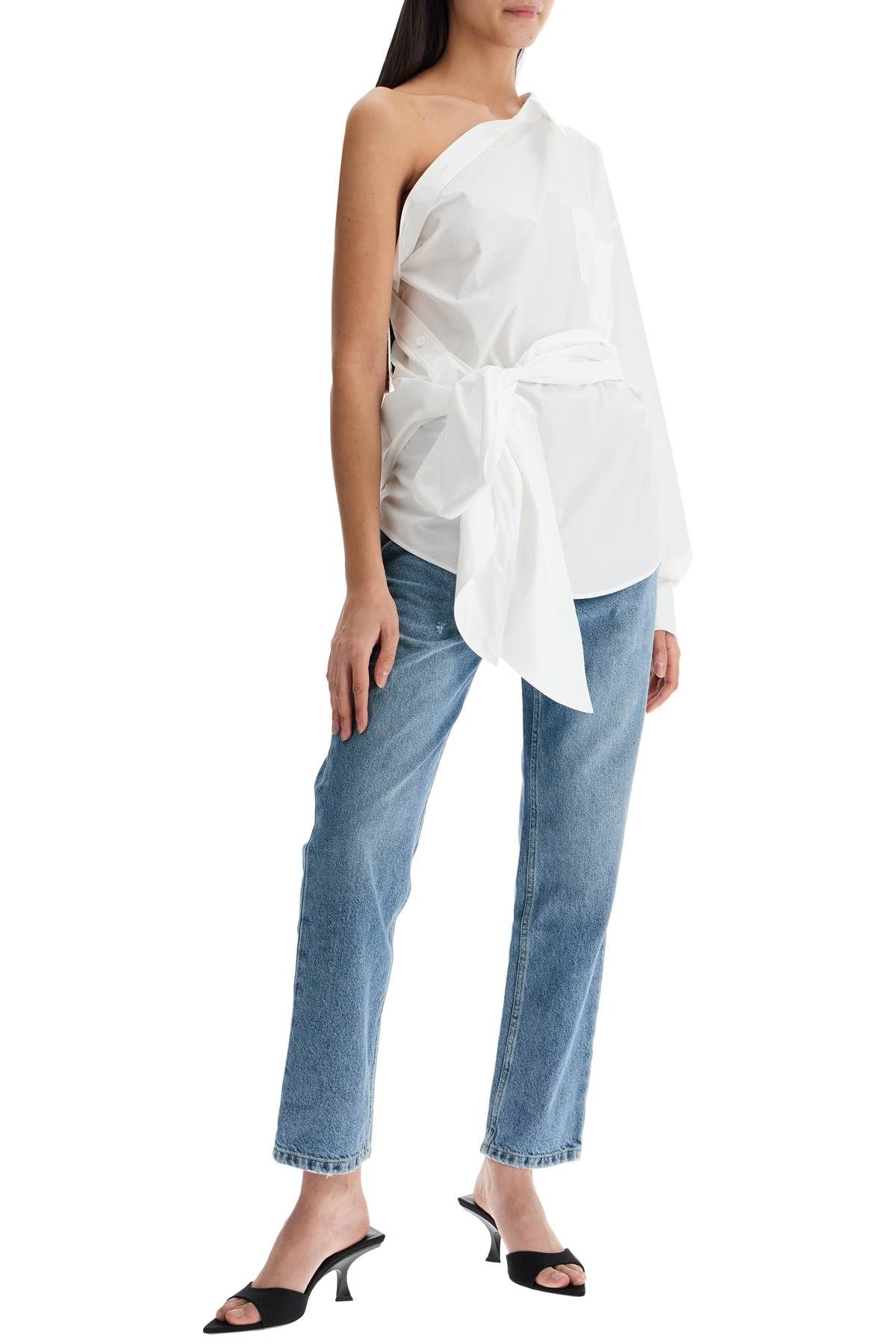 This Moschino one-shoulder shirt is characterized by an asymmetric design with a waist tie