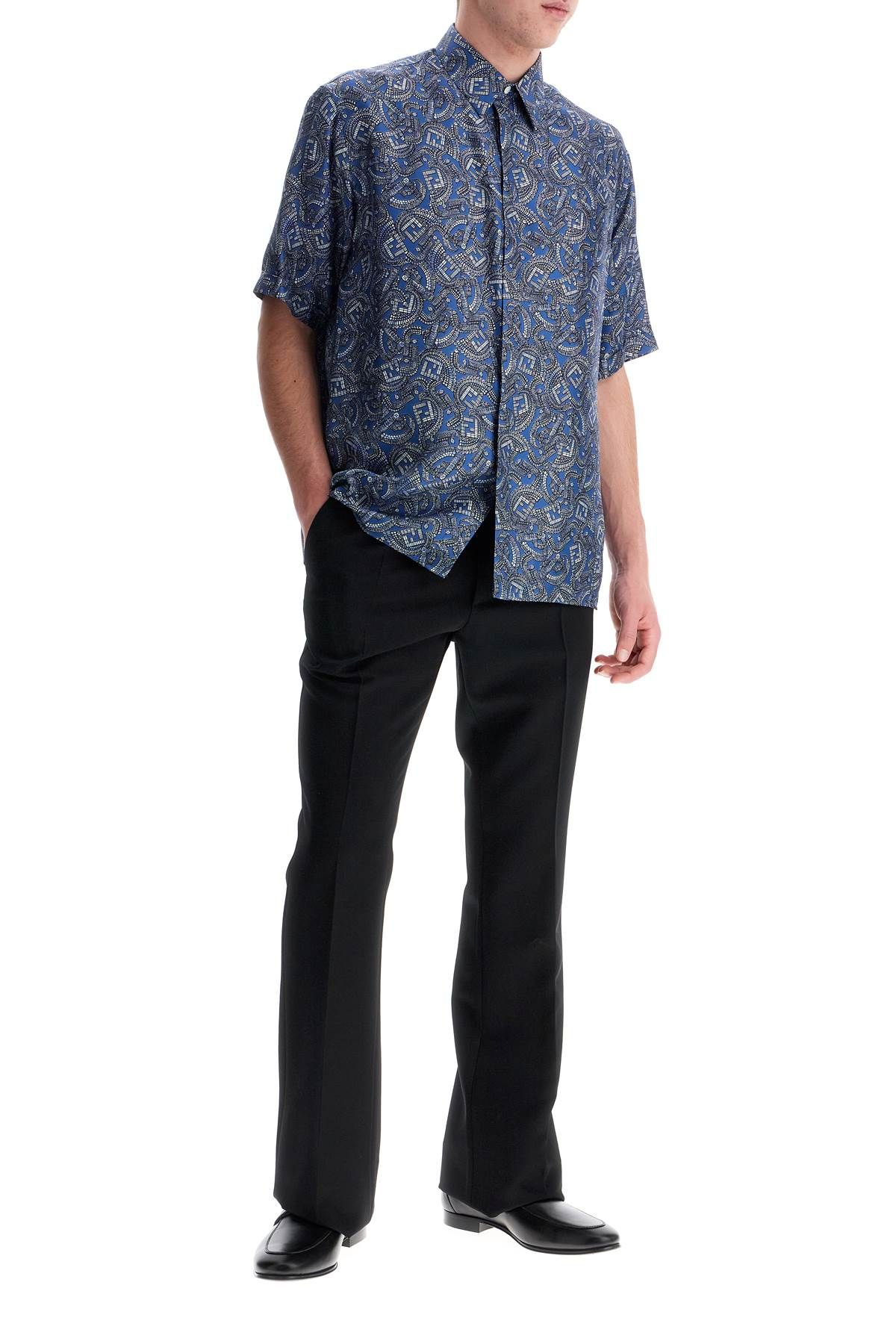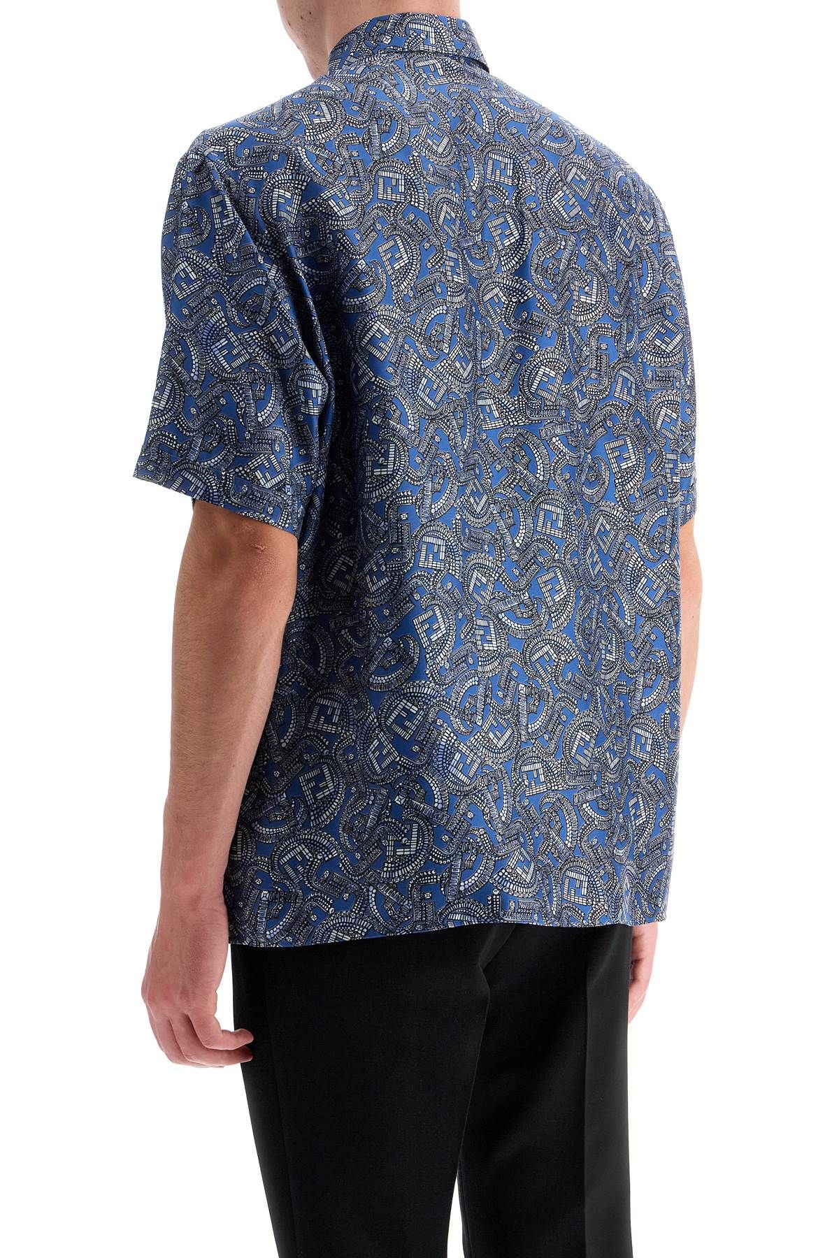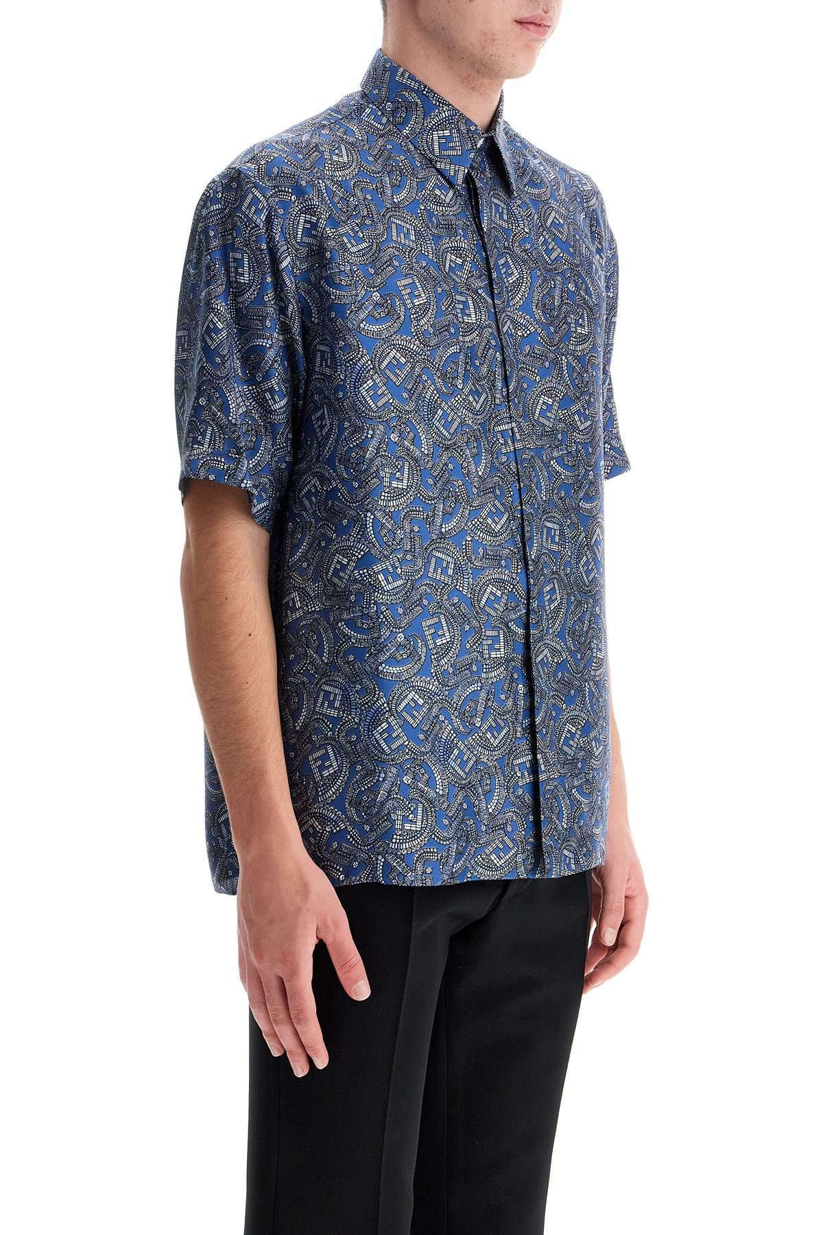 Made from pure silk twill with an all-over Fendi Jewels print, this short-sleeved Fendi shirt has a wide and boxy cut with an Italian collar and hidden button closure. The model is 182 cm tall and wears size 40.