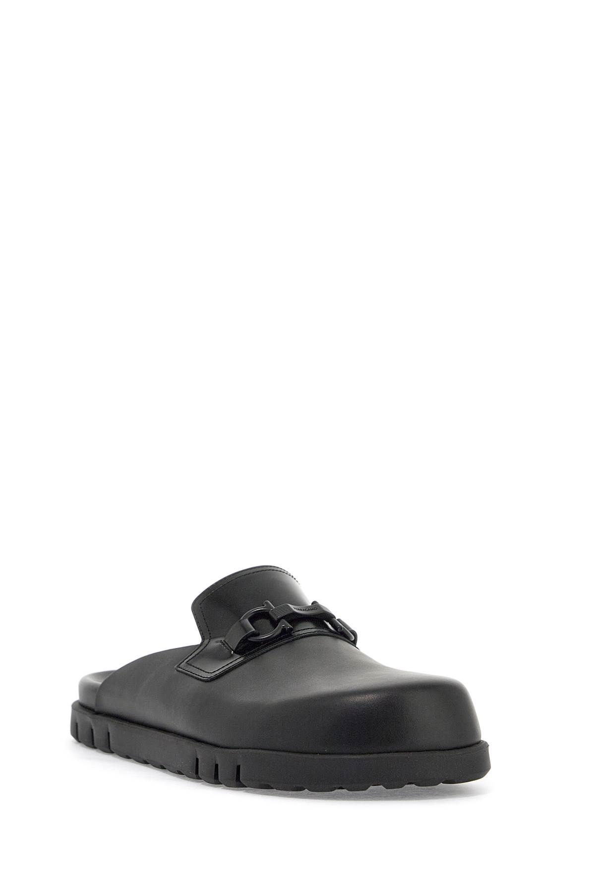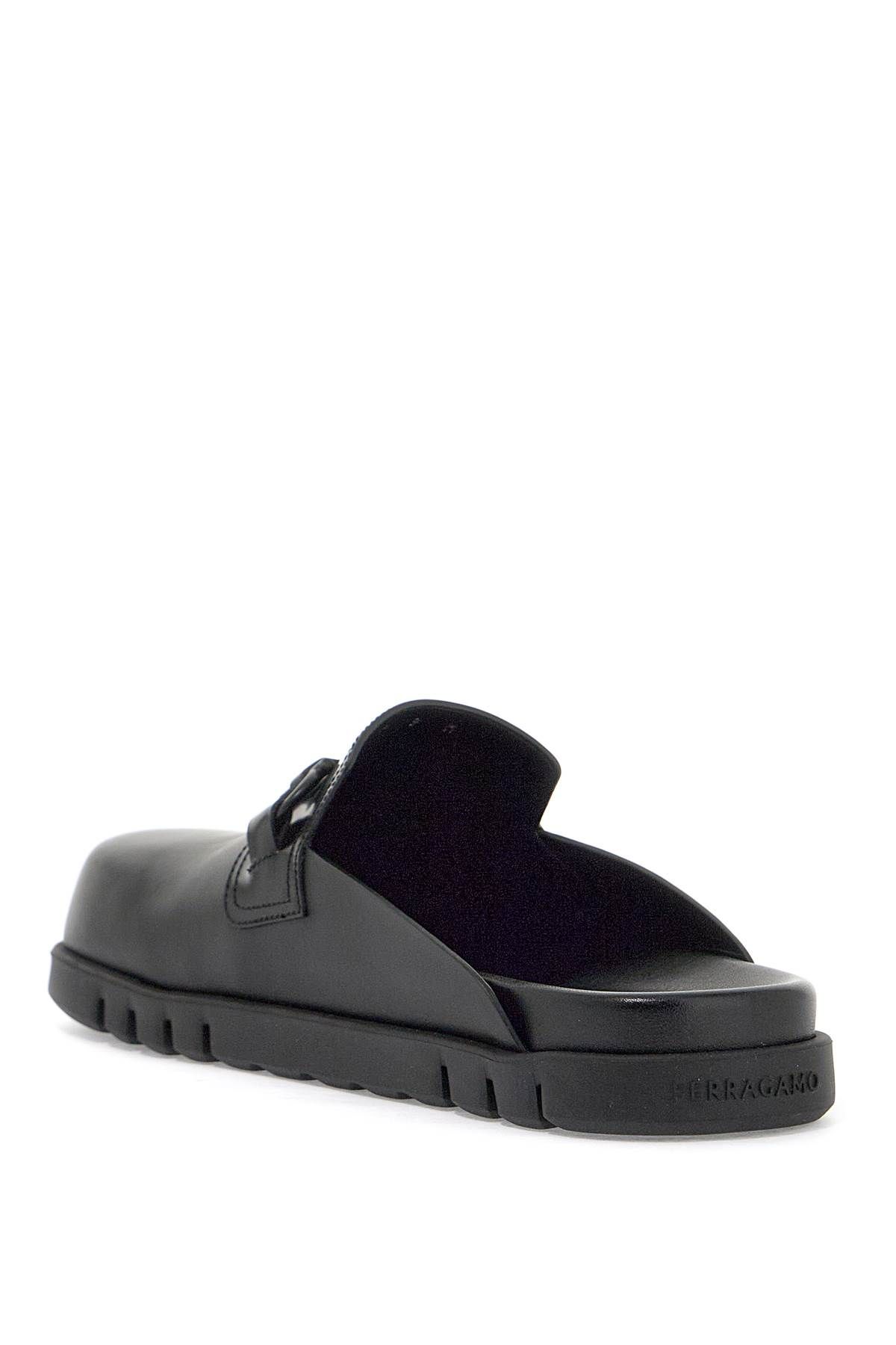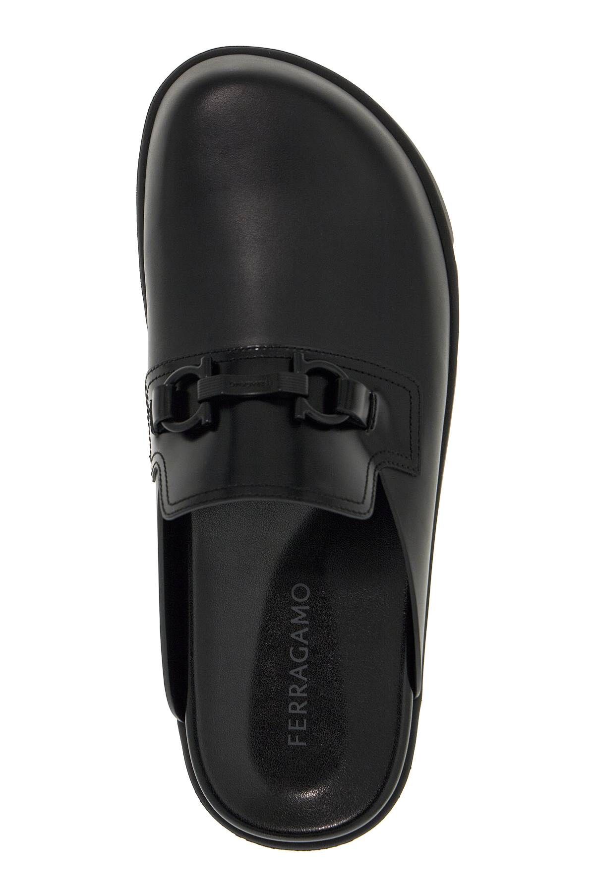 FERRAGAMO mules with a rounded toe line, made of smooth leather and decorated with a tone-on-tone Gancini ornament