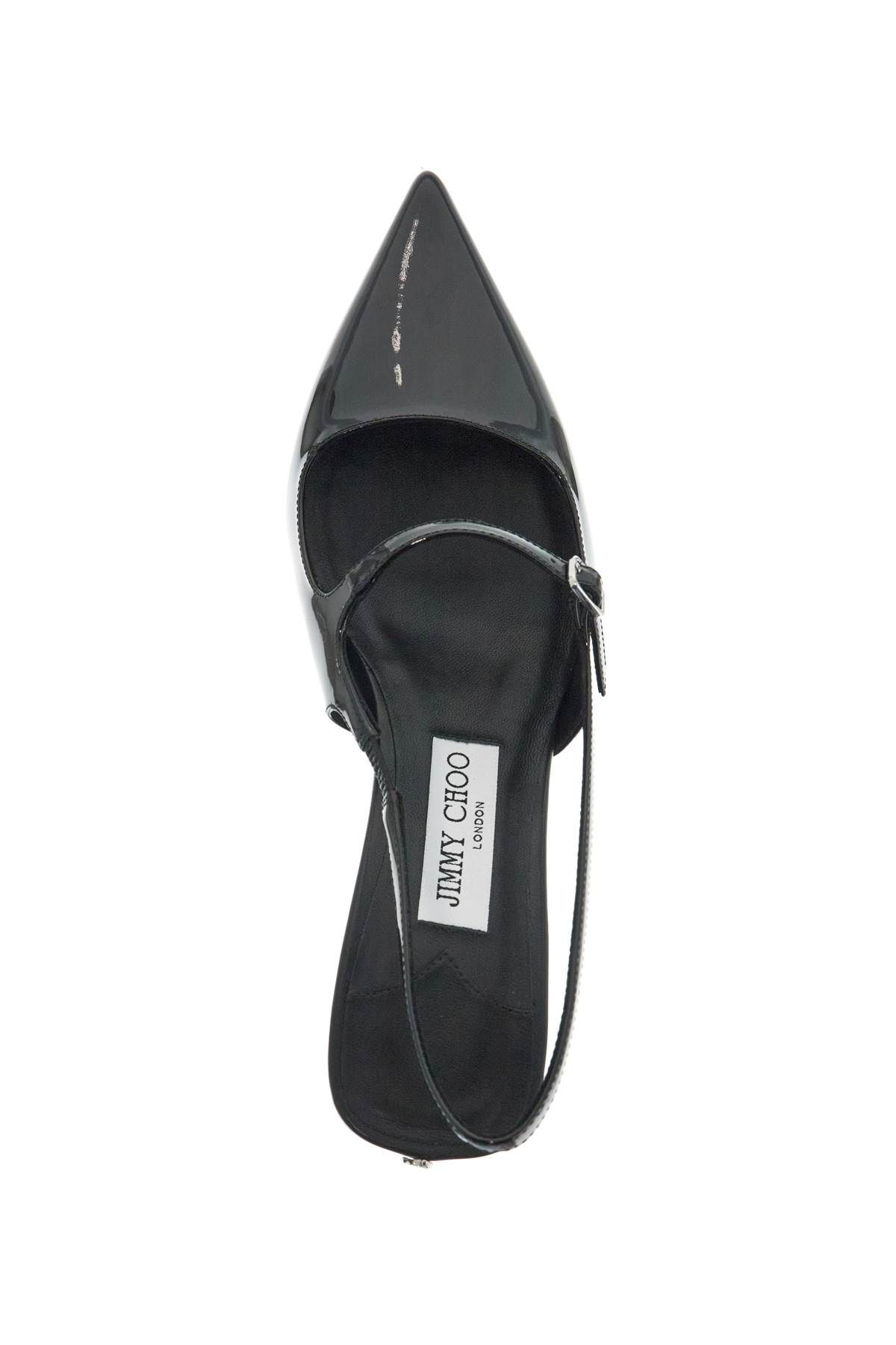 Didi 45 slingback pumps by Jimmy Choo crafted in patent leather with adjustable strap on the instep and lacquered kitten heel. JC silver metal monogram on the back, leather footbed and leather sole.