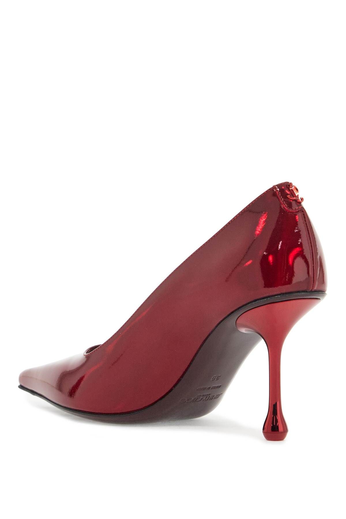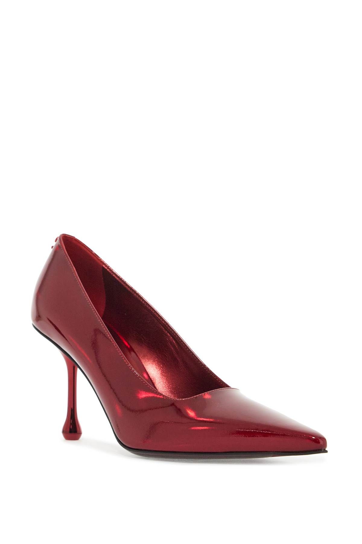 The Ixia 80 Décolleté by Jimmy Choo is made of laser-cut leather that gives a chrome effect. They feature a pointed design and squared upper, iconic Drop Heel, leather insole, and leather sole with rubber inlay.
