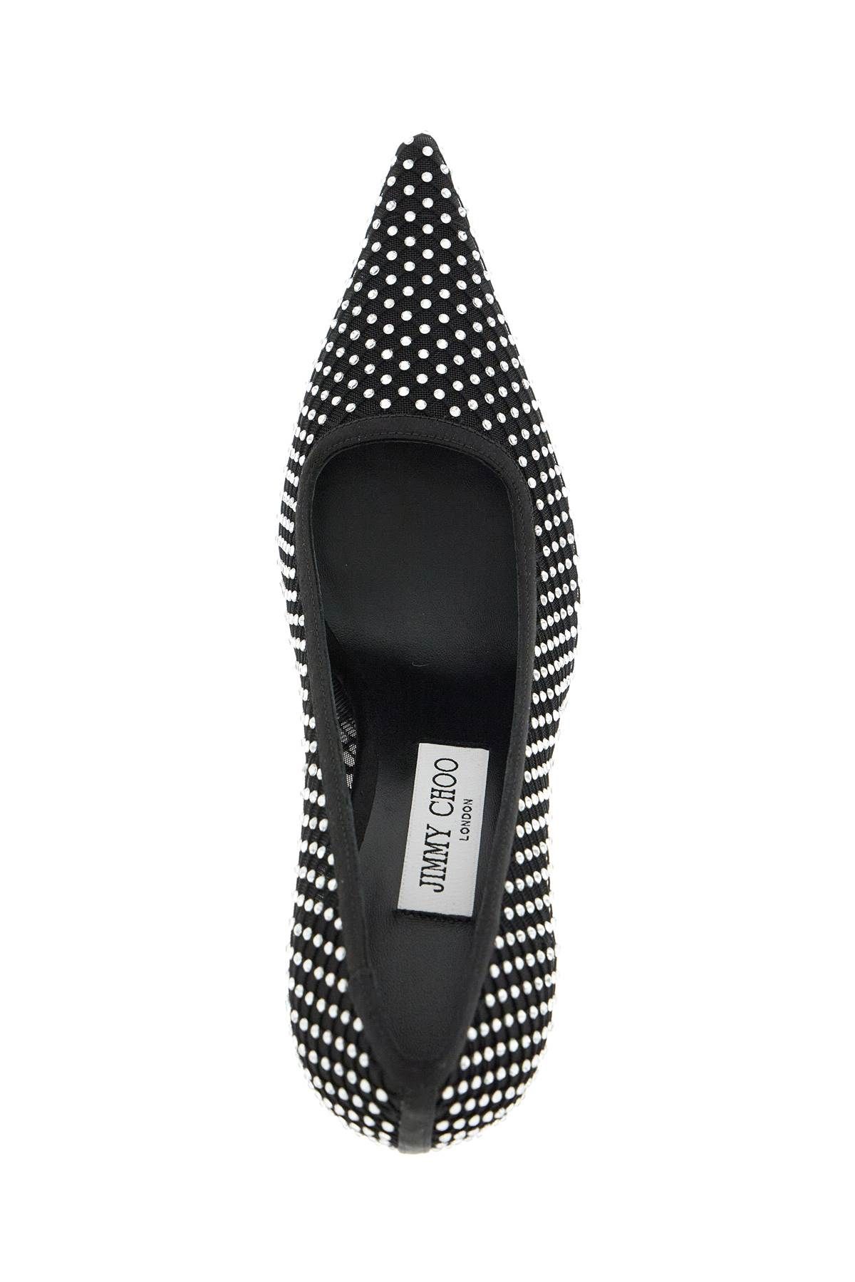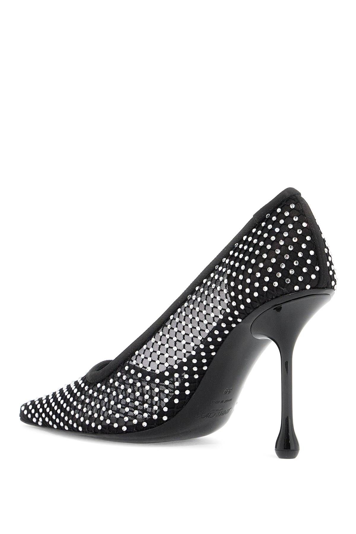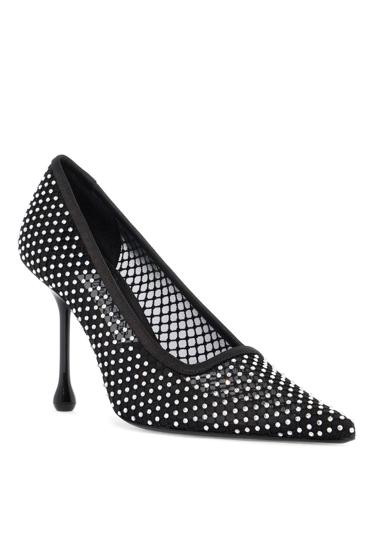 These Ixia 95 pumps by Jimmy Choo, made of mesh, are a reinterpretation of the classic silhouette with a lacquered drop heel and a squared neckline trimmed in satin