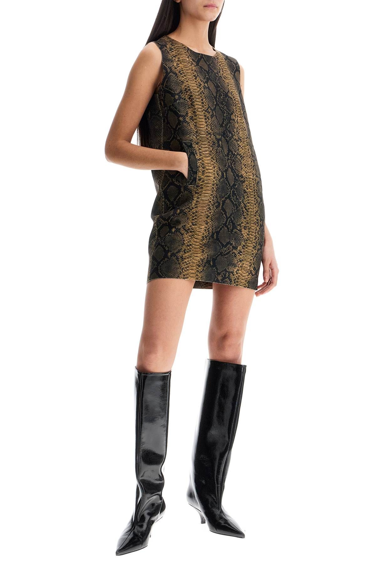 브라운 슬리브리스 파이톤 미니 드레스 Residenza 725